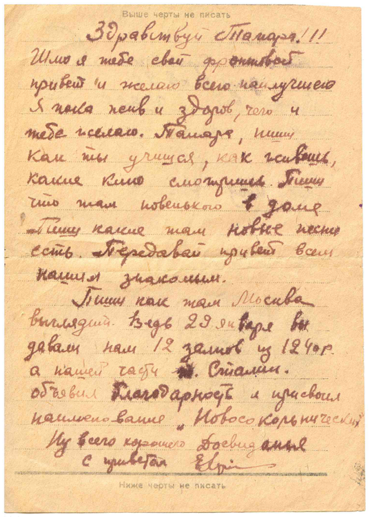 Евгений Михайлович Харитонов (1923-1994) - участник Великой Отечественной войны, выпускник 1-й Московской специальной артиллерийской школы 1942 года. Воевал на фронте с 1943 года в должности офицера разведки, командира батареи 395 гаубичного артиллерийского полка. Участвовал в освобождении территории РСФСР и в освобождении Прибалтики. На фронте был награждён двумя орденами Отечественной войны и орденом Красной Звезды.
