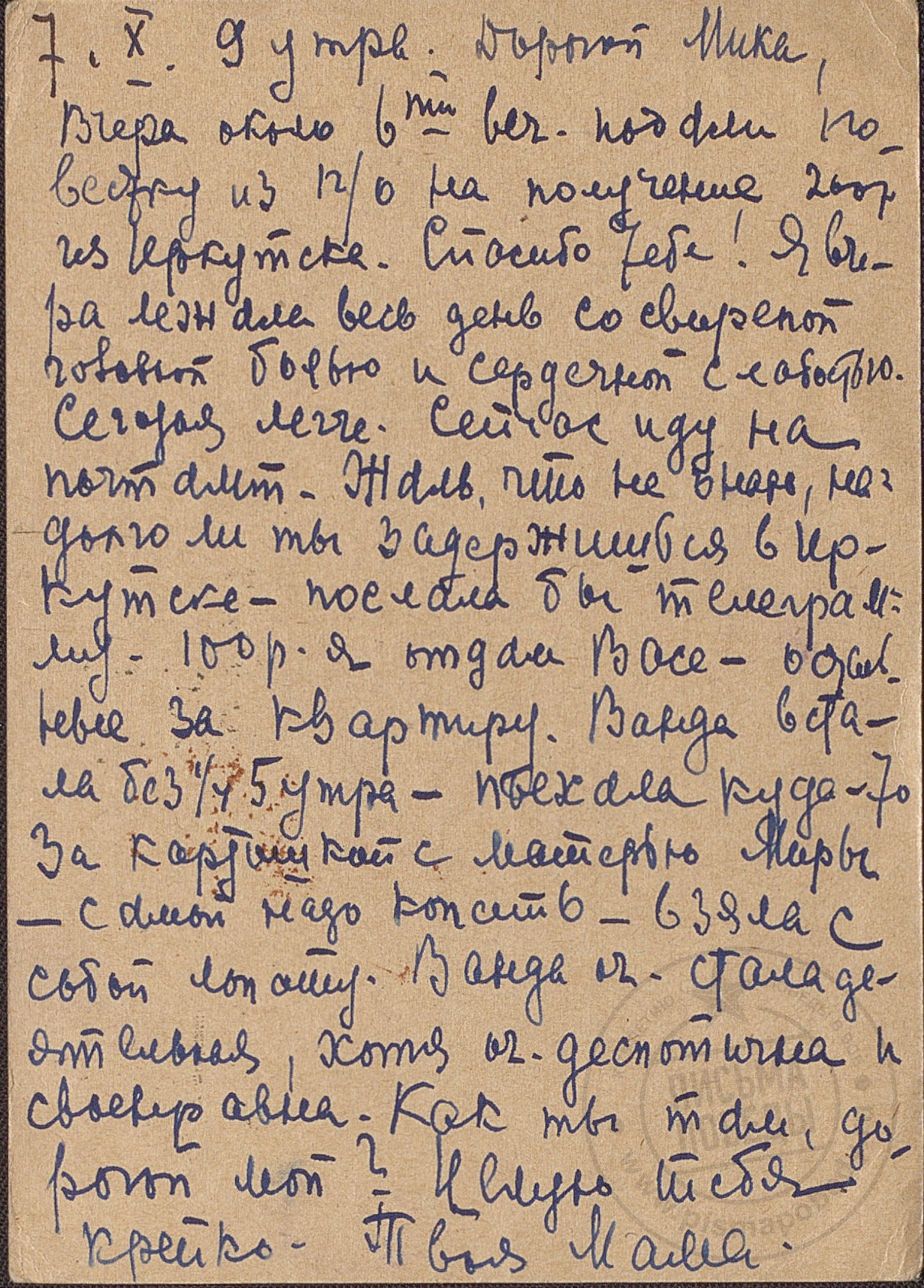 Письмо Адели Михайловны Гарпф из Ленинграда сыну Михаилу Иосифовичу Гарпф. 7 октября 1941 г. / Гарпф Адель Михайловна (1887—1970-е). - 1941. -