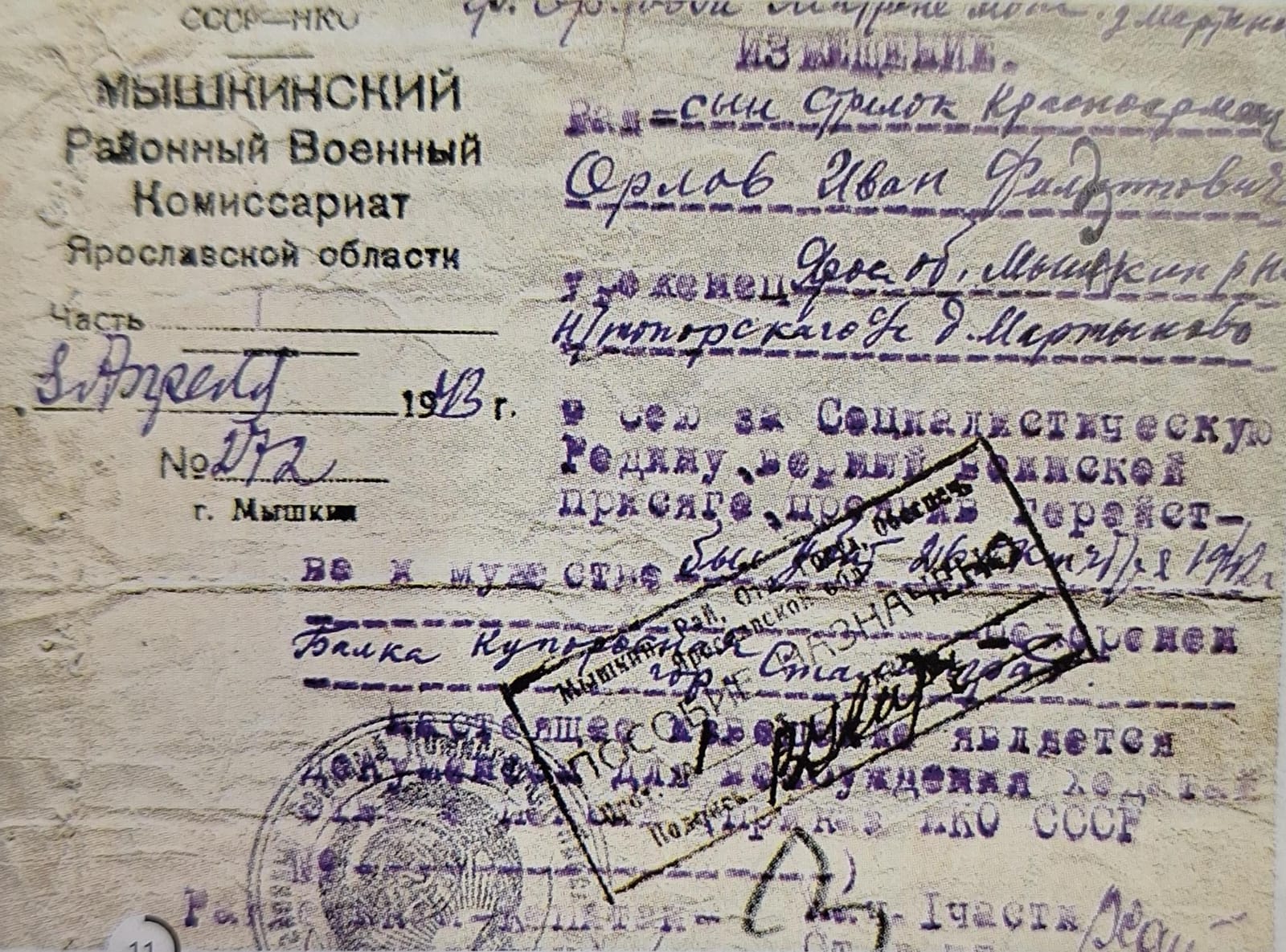 Родился в Ярославской области г. Мышкин. Ушел на фронт в 1941 году осенью Мать осенью получила похоронку, но все равно продолжала ждать сына. Осенью 42 года под Сталинградом погиб.
