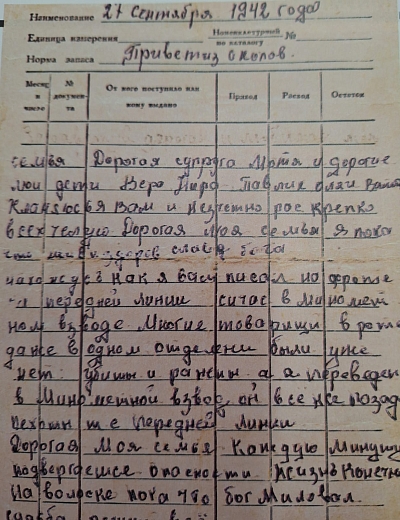 3 сентября 1941 года Иван Орлов ушел на свою третью войну, после Первой мировой и Гражданской. И уже через 2 дня написал первое письмо. Писал он часто. На клочках бумаги, на обороте листовок, на пустых страницах армейских брошюр