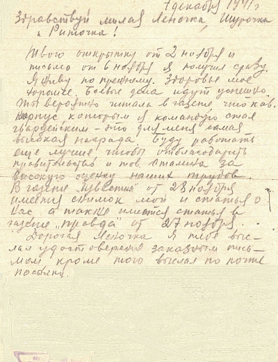 Лев Михайлович Доватор в июле 1941 года за отличие в оборонительных боях на Соловьёвской переправе через Днепр был награждён орденом Красного Знамени. В августе 1941 года назначен на должность командующего Оперативной кавалерийской группы 29-й армии. С 14 августа по 2 сентября группа под его командованием совершила рейд по тылу противника на территории Смоленской области, нанеся существенный урон противнику: до 3 000 убитых солдат и офицеров, 150 автомашин, 9 танков, 4 артиллерийских орудия, 6 миномётов; на борьбу с конницей Доватора немецкое командование было вынуждено отвлечь с фронта две дивизии. В сентябре-октябре «группа Доватора» приняла участие в тяжёлых оборонительных боях на реке Меже и по реке Ламе. В октябре кавалерийская группа участвовала в оборонительных боях на шоссе Белый-Ржев, прикрывая отступление стрелковых соединений на волоколамском направлении, а затем провела ряд наступательных боёв в районе Истринского водохранилища и Солнечногорска. 20 ноября Оперативная кавалерийская группа 29-й армии была переименована в 3-й кавалерийский корпус, который 26 ноября был награждён почётным званием Гвардейский. 19 декабря 1941 года при атаке на деревню Палашкино под городом Руза генерал-майор Доватор был смертельно ранен пулемётной очередью. Указом Президиума Верховного Совета СССР от 21 декабря 1941 года гвардии генерал-майору Доватору Льву Михайловичу за мужество и героизм, проявленные в боях с немецко-фашистскими захватчиками, присвоено звание Героя Советского Союза (посмертно).