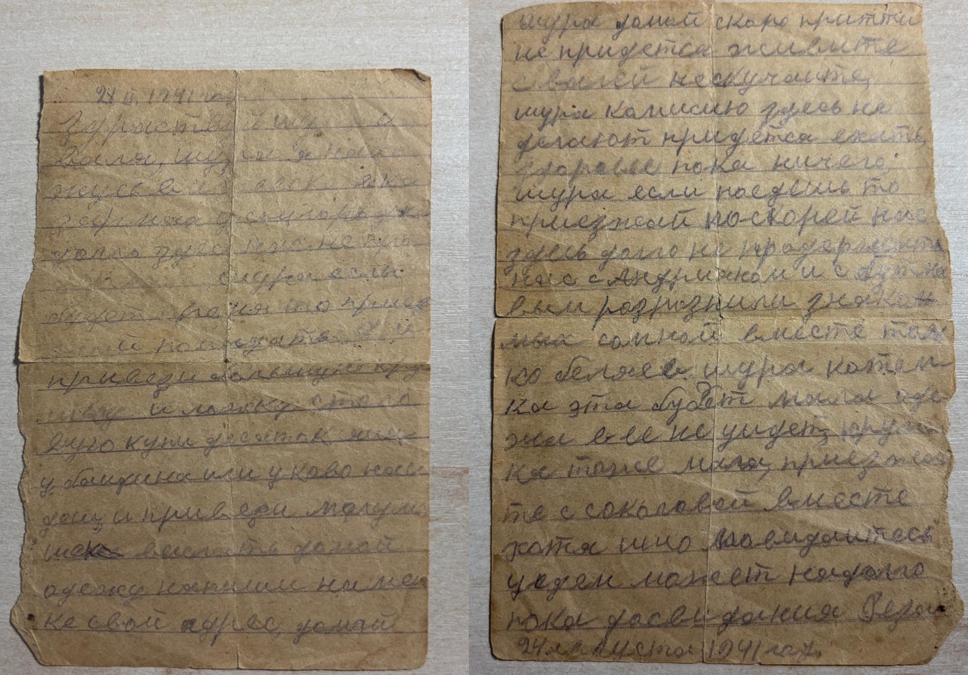 Дата написания письма: 24.08.1941