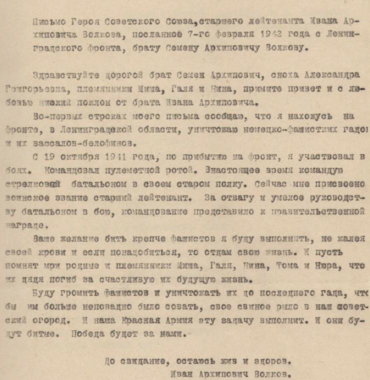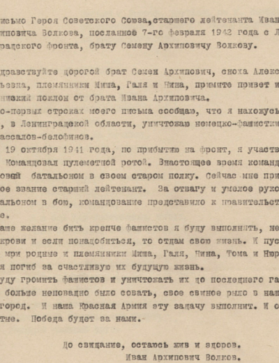 Дата написания письма: 19.02.1942