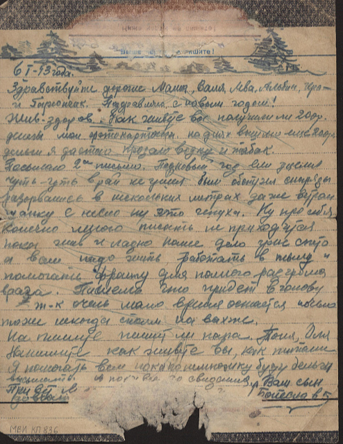 Дата написания письма: 06.01.1943