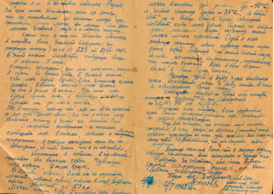 Дата написания письма: 04.01.1942