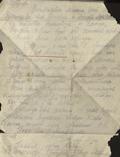 Дата написания письма: 26.08.1941