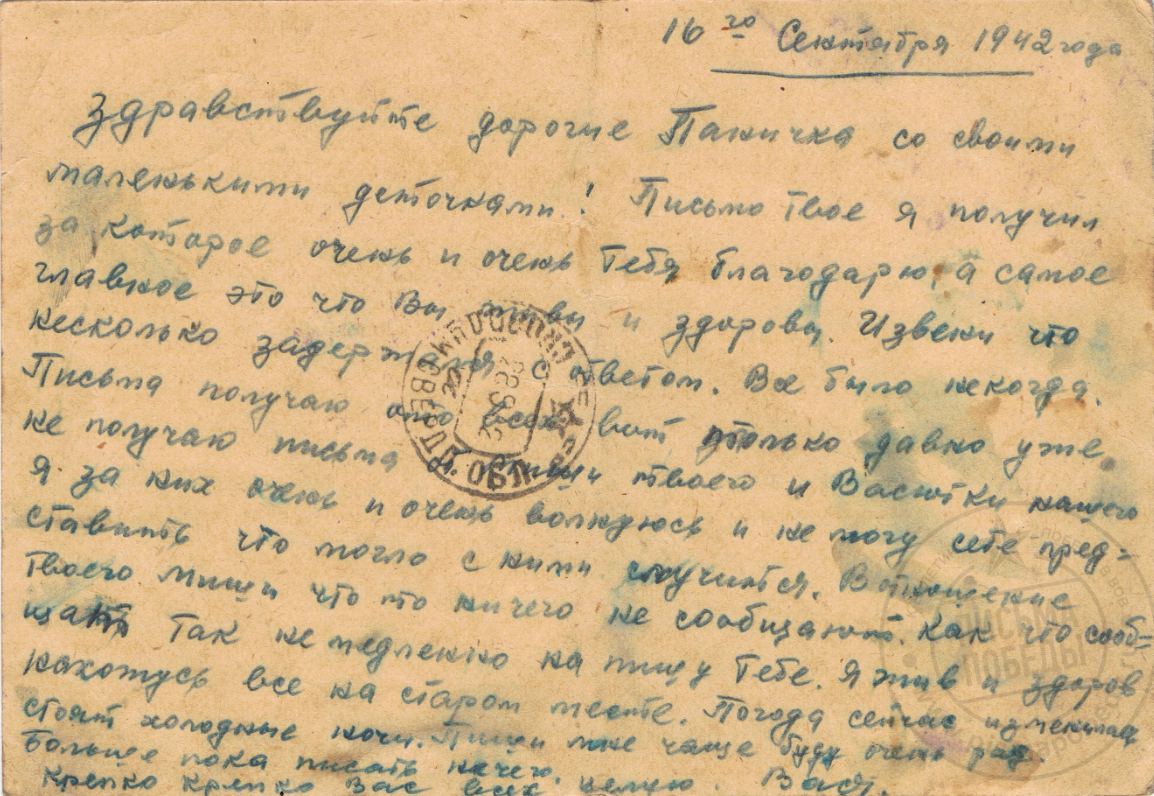 Дата написания письма: 16.09.1942