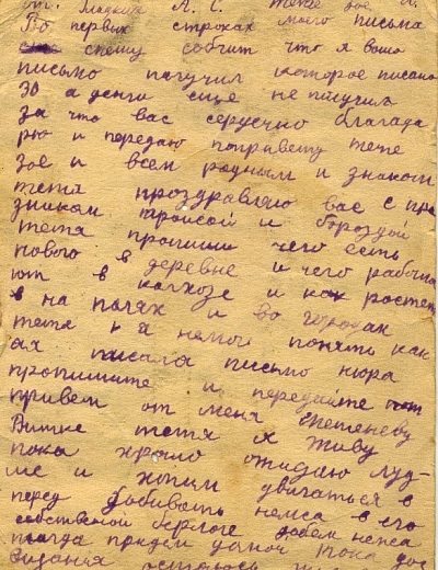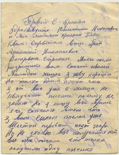 В семье Журавлевых на фронт ушли два брата Василий и Владимир. Оба брата не вернулись с фронта. Перед вами письмо Владимира, написанное родным в 1942 году.
