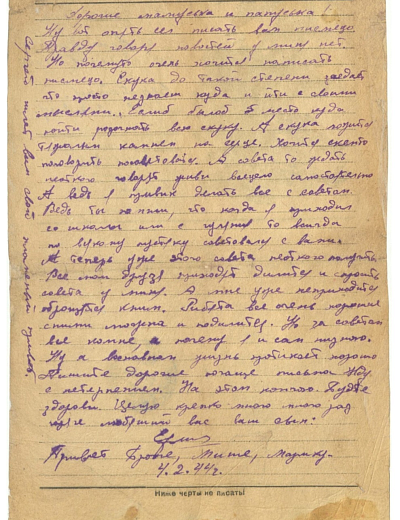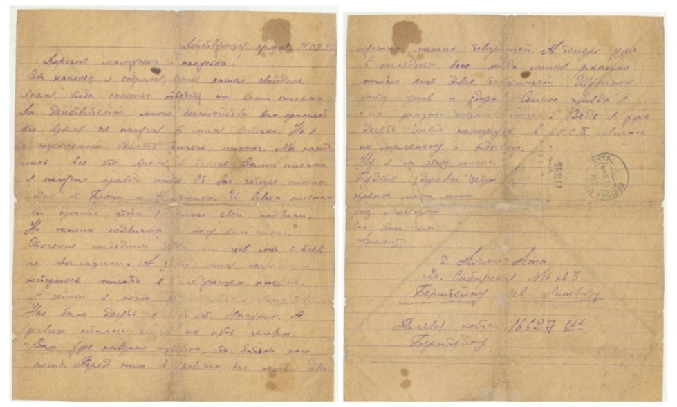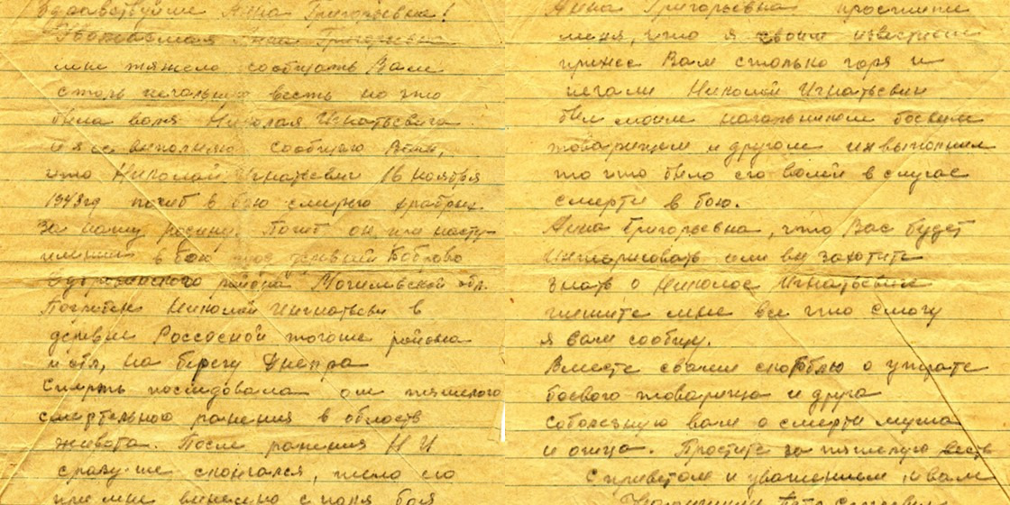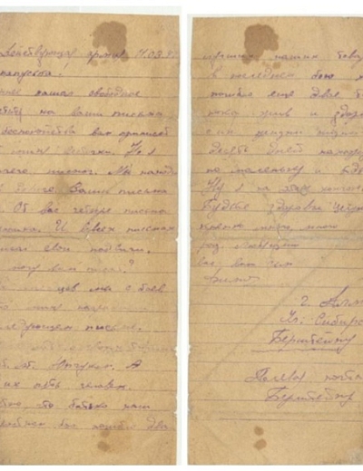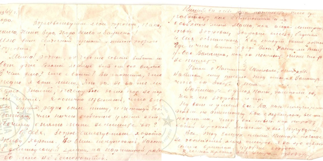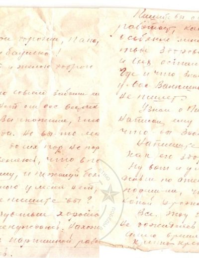 Коллекция Тульского военно-исторического музея пополнилась новыми предметами, переданными в дар музею жительницей города Садчиковой Галиной Михайловной. У Галины Михайловны не осталось прямых родственников, которым бы она могла рассказать историю своей семьи, поэтому женщина решила поделиться ею со всеми неравнодушными... Семья дедушки и бабушки Галины Михайловны - Марковых Тимофея Петровича (1887-1944) и Марфы Моисеевны (1891-26.12.1968) до Великой Отечественной войны проживала в деревне Торчково Алексинского района Тульской области. В семье росли две девочки и трое мальчиков. Сложная судьба выпала на долю Марфы Моисеевны. Годовалой похоронили они с мужем первую дочь свою Елизавету (1916-1917 ?). Во время Великой Отечественной войны пропал без вести старший из сыновей - Василий Тимофеевич (1918-01.1942), погиб и захоронен в Харьковской области средний сын - Иван Тимофеевич (1920-12.09.1943), в возрасте 14 лет убит немецкими оккупантами младший – Сергей Тимофеевич (1928-1941). Мужа Тимофея Петровича, работавшего в колхозе, Марфа Моисеевна похоронила в 1944 г. Лишь Анастасия Тимофеевна (1923-1999) прожила долгую, но очень непростую жизнь... Галина Михайловна - ее дочь, унаследовавшая от бабушки Марфы Моисеевны и матери сложную историю своей семьи.