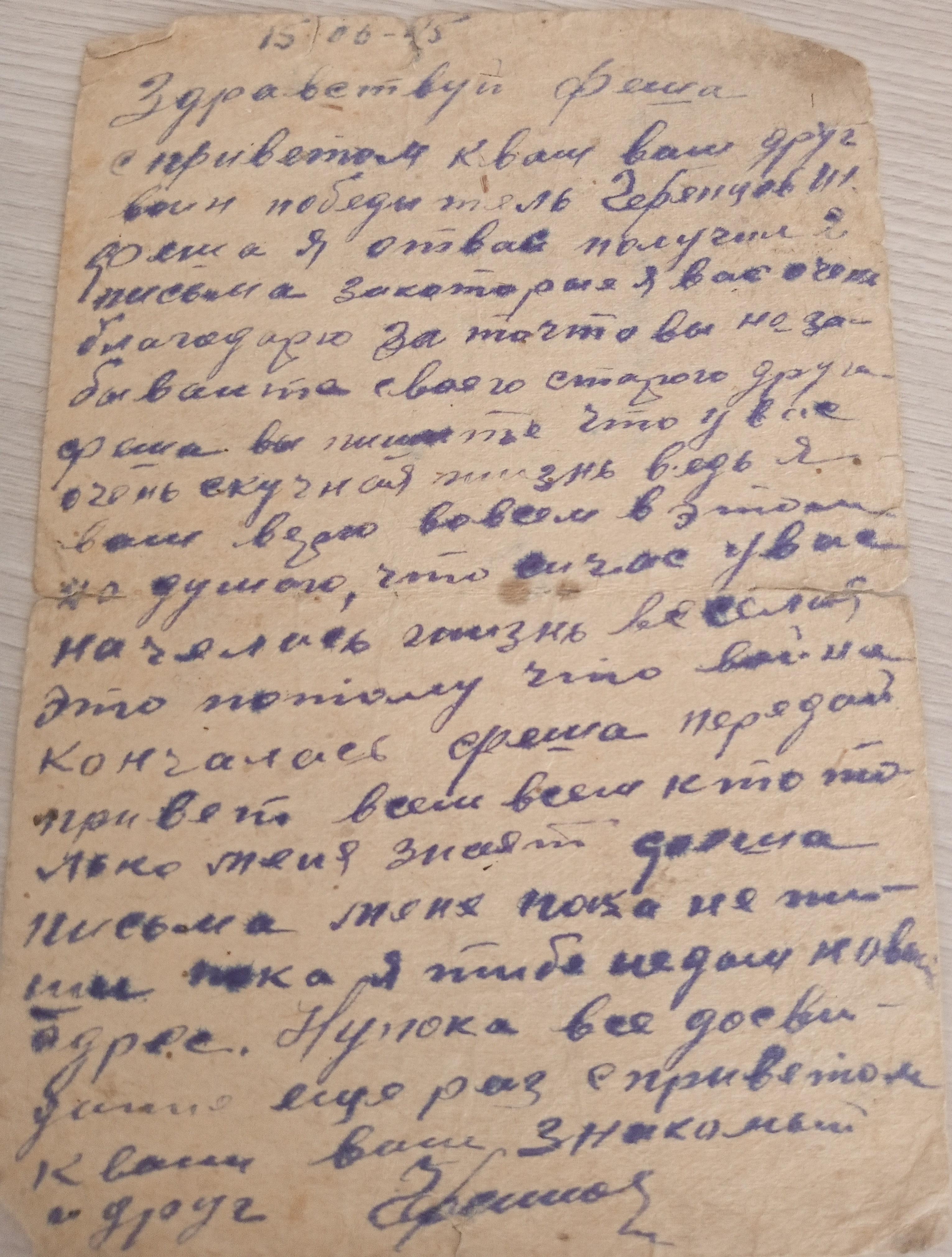 Дата написания письма: 15 июня 1945 года