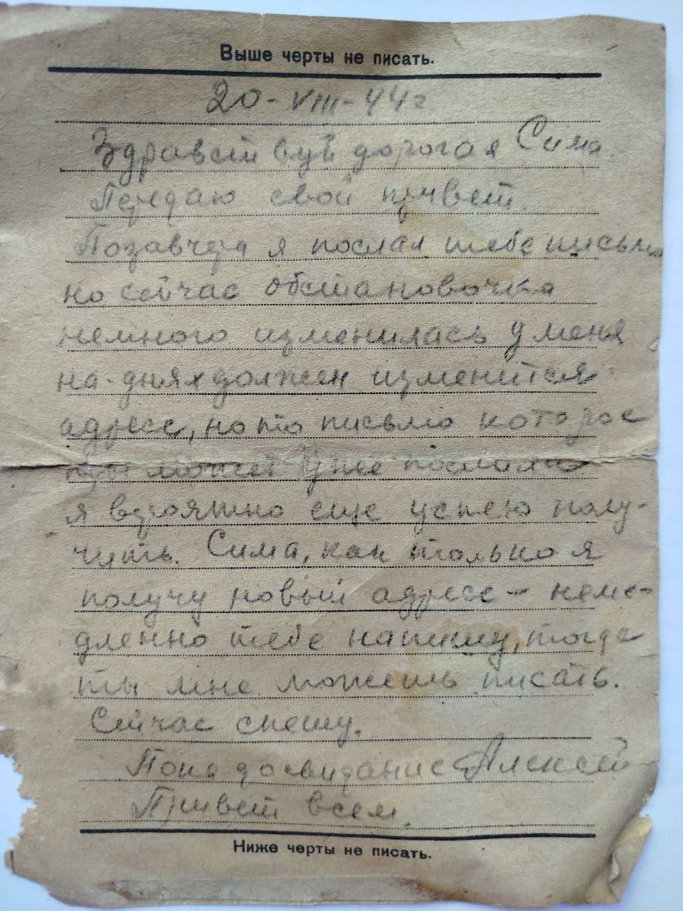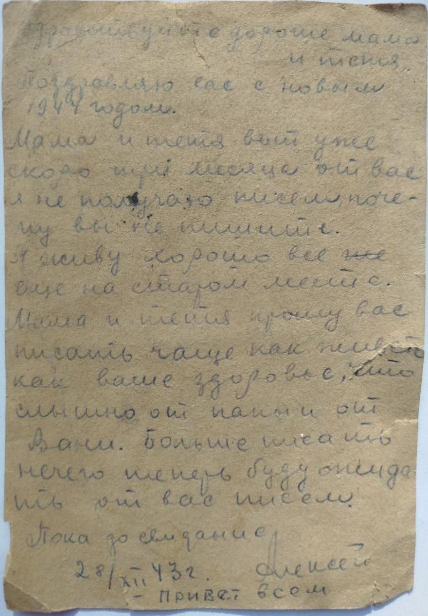 Это письмо, вероятно, стало последним, которое отправил Алексей.
