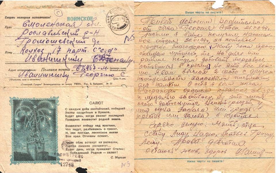 Родился Е.С. Иванишкин в Смоленской области, Рославленского р-н, д. Громашево, Сержант Иванишкин Егор (Георгий) Степанович был радистом-пулемётчиком 101-й танковой бригады 19-го танкового корпуса, ранен в бою 9 мая 1944 г., умер от ран в госпитале села Скели (Родниковое) 18 мая 1944 года. Бесстрашным бойцом был Егор Иванишкин. За образцовое выполнение боевых заданий награждён командованием танковой бригады орденом Красная Звезда и медалью «За Отвагу». Подписывал приказы о награждении командир 101-й танковой бригады подполковник М.Ф. Хромченко. Копии документов о награждении и письма находятся в архиве школьного музея «Хранитель памяти» ГБОУ СОШ № 47. Документы вместе с фронтовыми письмами сына передали в школьный музей родители Е.С. Иванишкина, когда приезжали поклониться праху своего сына на братскую могилу в с. Родниковое (Скели).