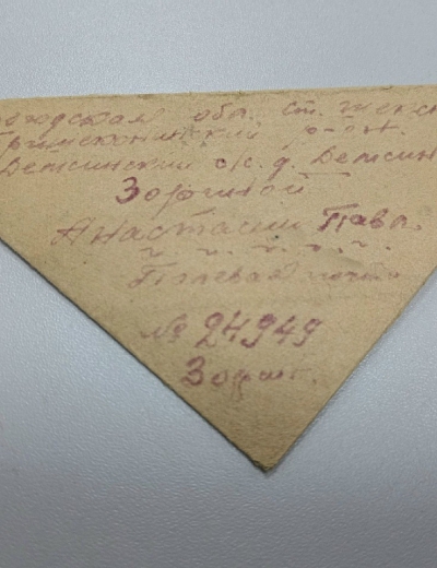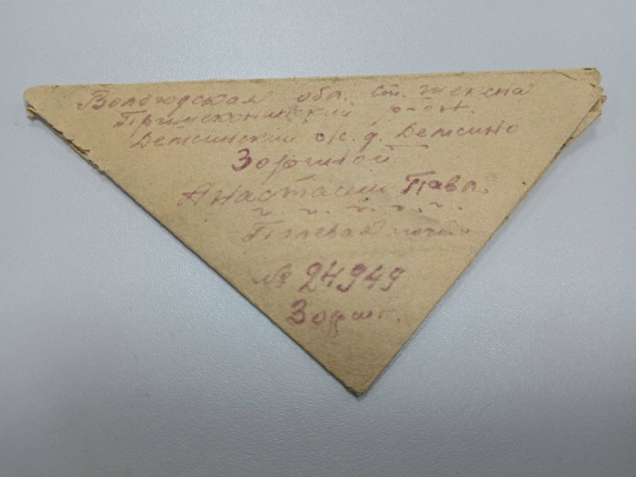 Владимир Алексеевич Терехов родился д. Соболевка Сухиничского района Калужской области. 15 января 1943 года был призван на фронт. С 15 декабря 1943 года связь с ним прекратилась. Письмо адресовано матери Тереховой Надежде Филипповне.