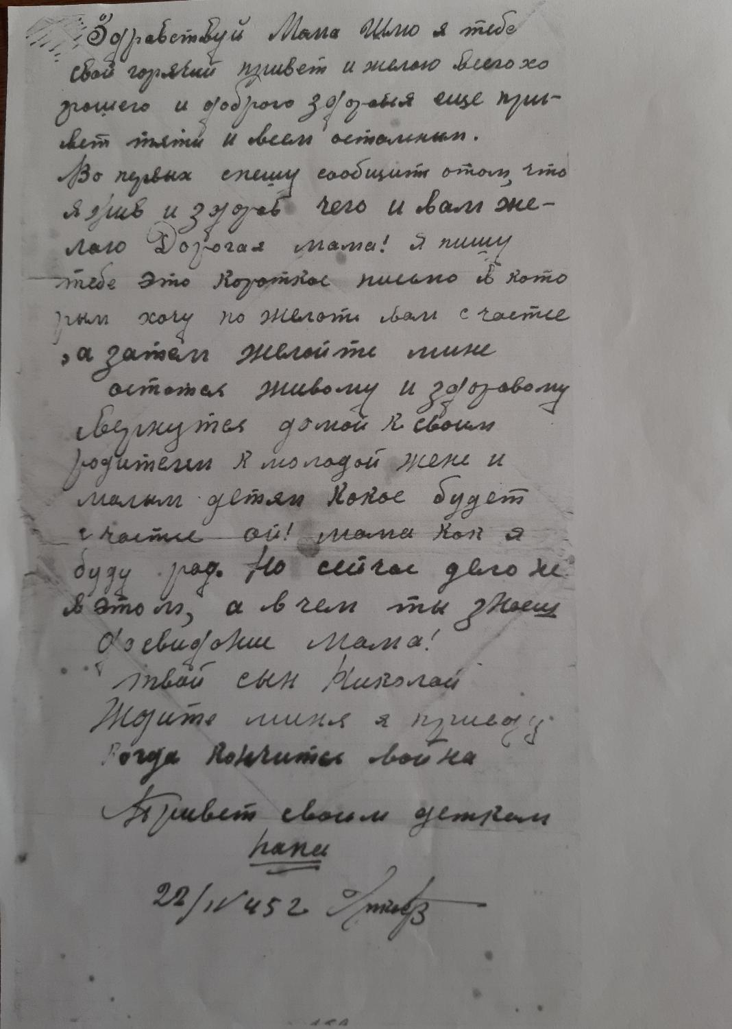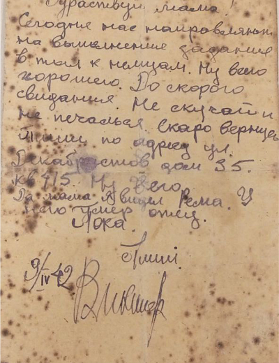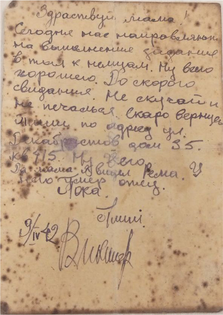 Призван на фронт Советским РВК г. Алма-Ата 26 июля 1941 г.