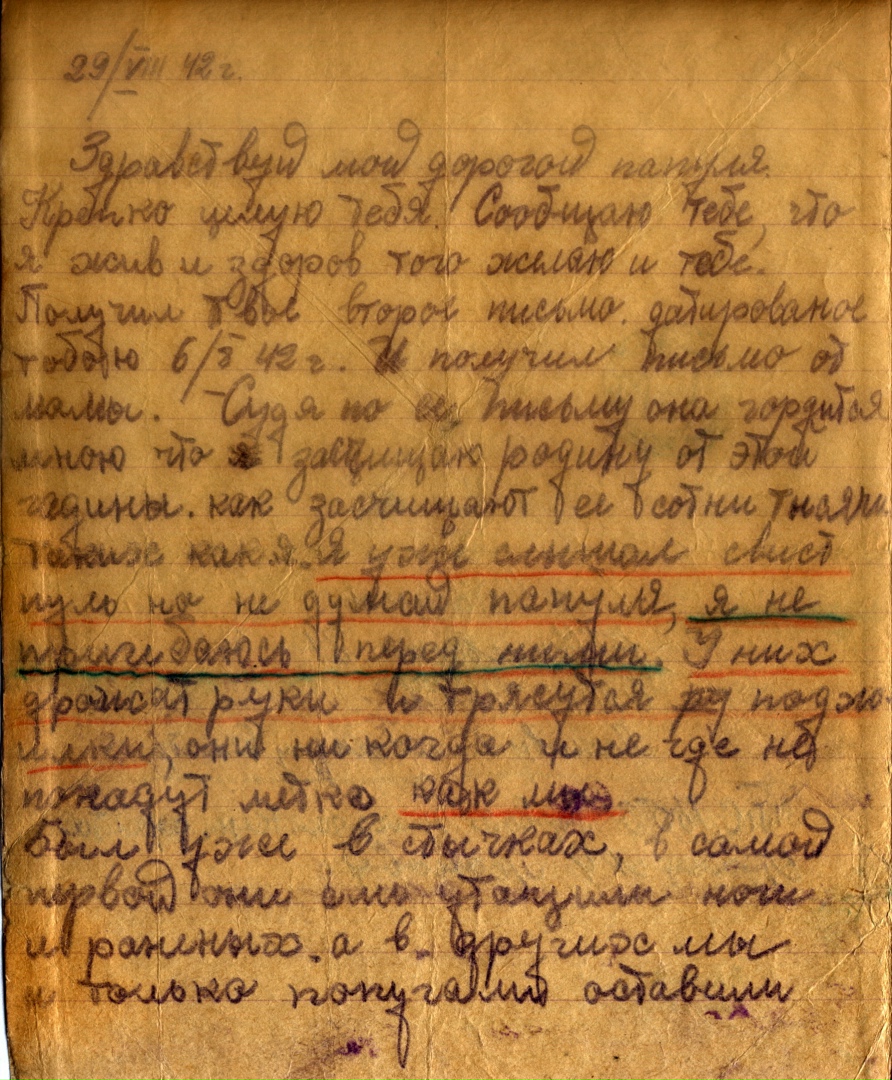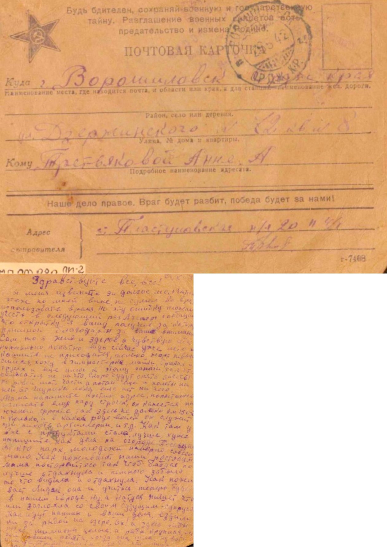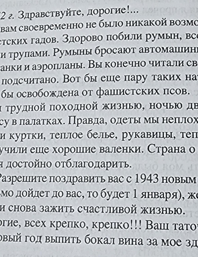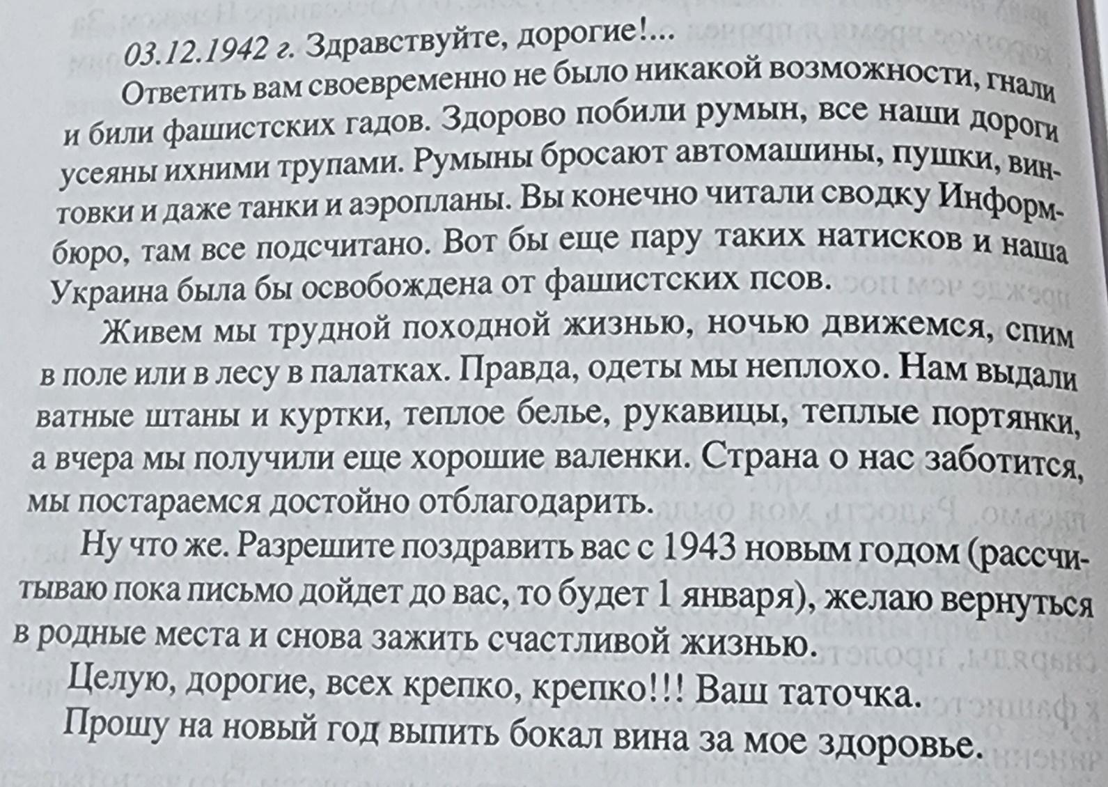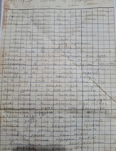 В семье сохранилось письмо с фронта, которое Михаил Петрович написал 9 января 1945 года. Вспоминая свой боевой путь, дедушка говорил: «Раньше мы шли в армию с высоко поднятой головой, а теперь юношей не загонишь. Мы очень любили свою Родину и готовы были отдать за нее жизнь».