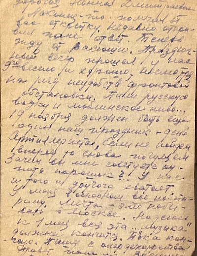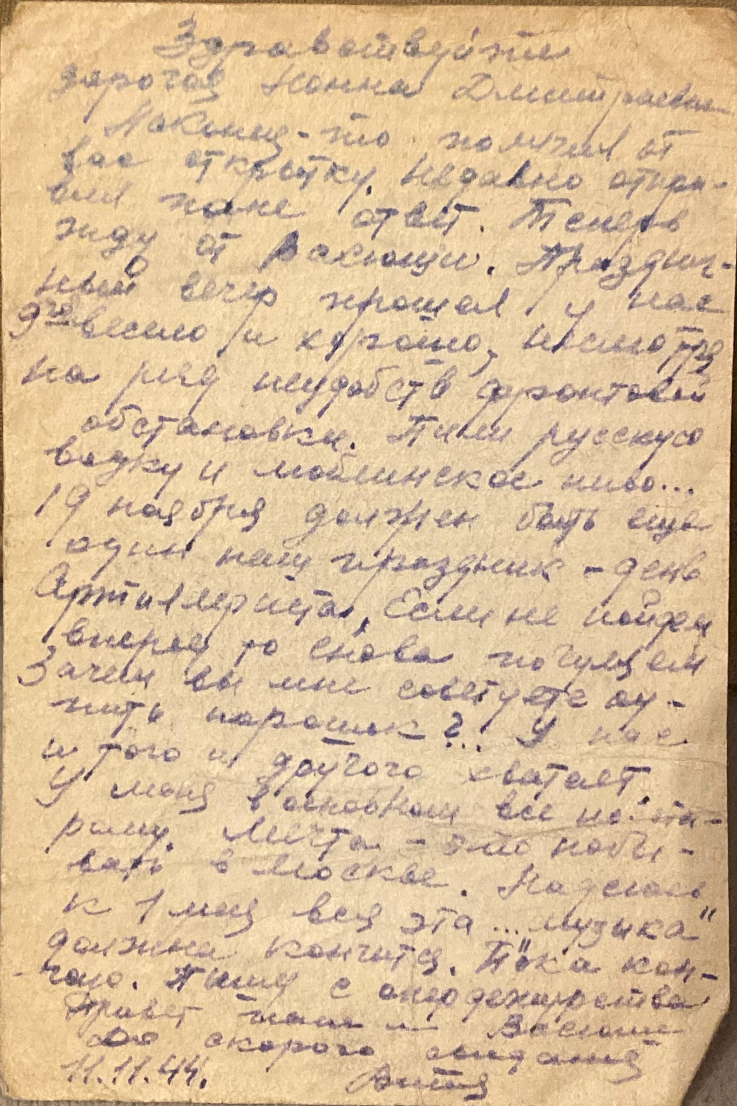 Письмо было написано в 1944 году родным и близким по адресу БССР, Витебская область, город Лепель, ул. Полевая, дом № 9