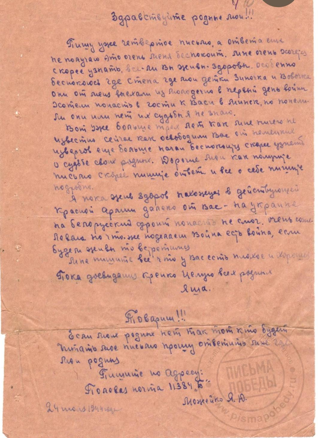 Призван в ряды Красной Армии в декабре 1941 года. Воевал на Воронежском фронте. В боях под Воронежем 8 июля 1942года было написано данное письмо.