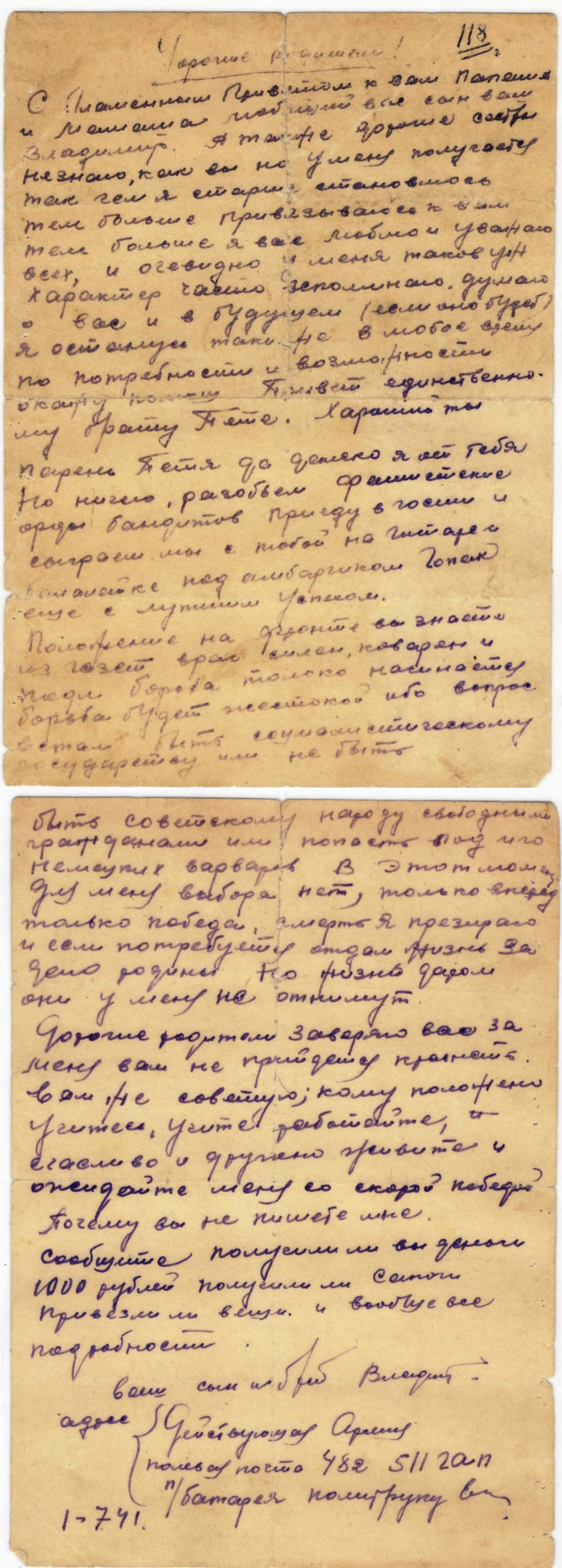Дата написания письма: 01.07.1941