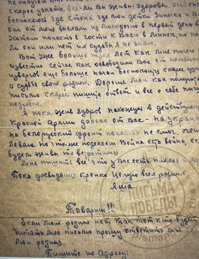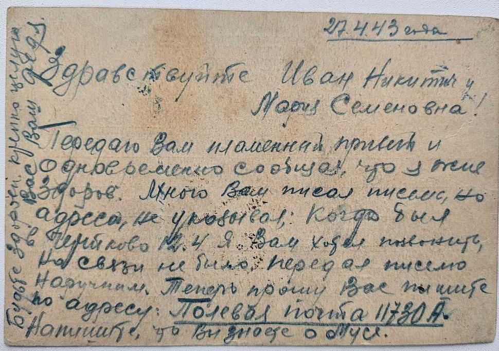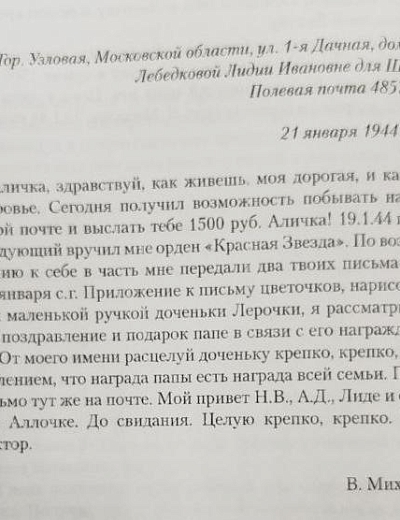 Письмо было написано маме Федора Петровича - Куликовой Матрене Николаевне, которая проживала по адресу Мордовская АССР, Чамзинский район, село Хлыстовка