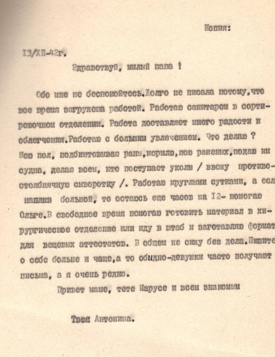 Последнее письмо Сашеньки Горюхиной оправлено домой в январе 1945-го. Александра Ивановна Горюхина пропала без вести перед самой Победой, в апреле 1945 года. Розыски ни чем не помогли.