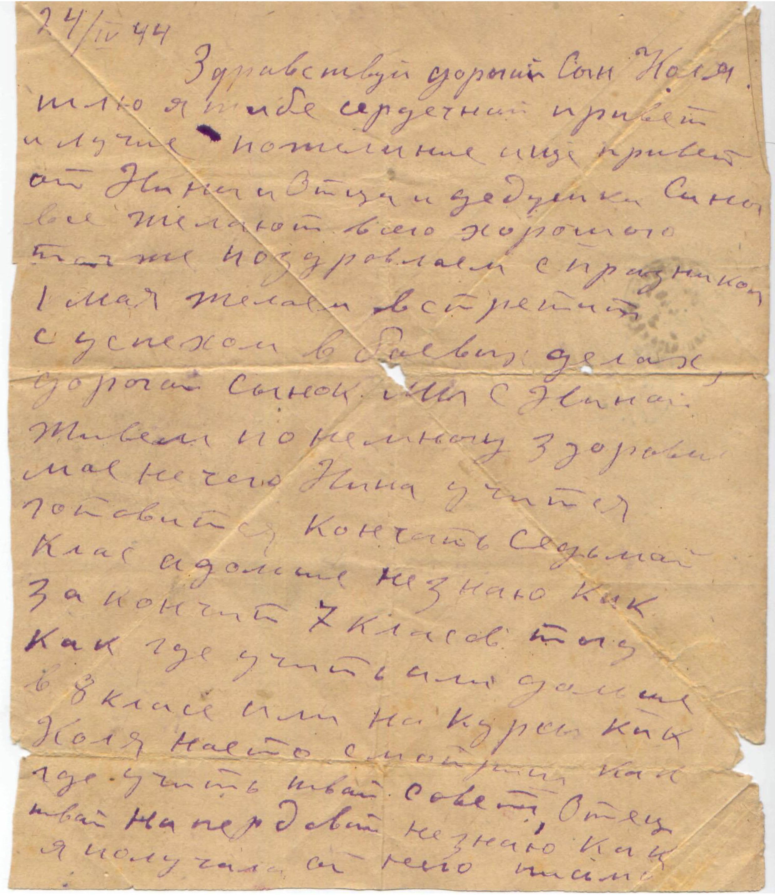Письмо матери на фронт сыну Н.М. Шунгурову Шунгурова