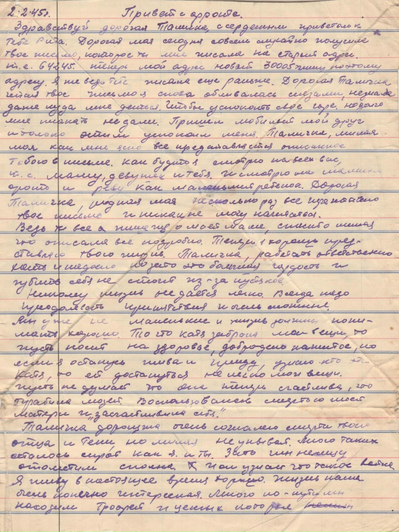 Дата написания письма: 02.02.1945