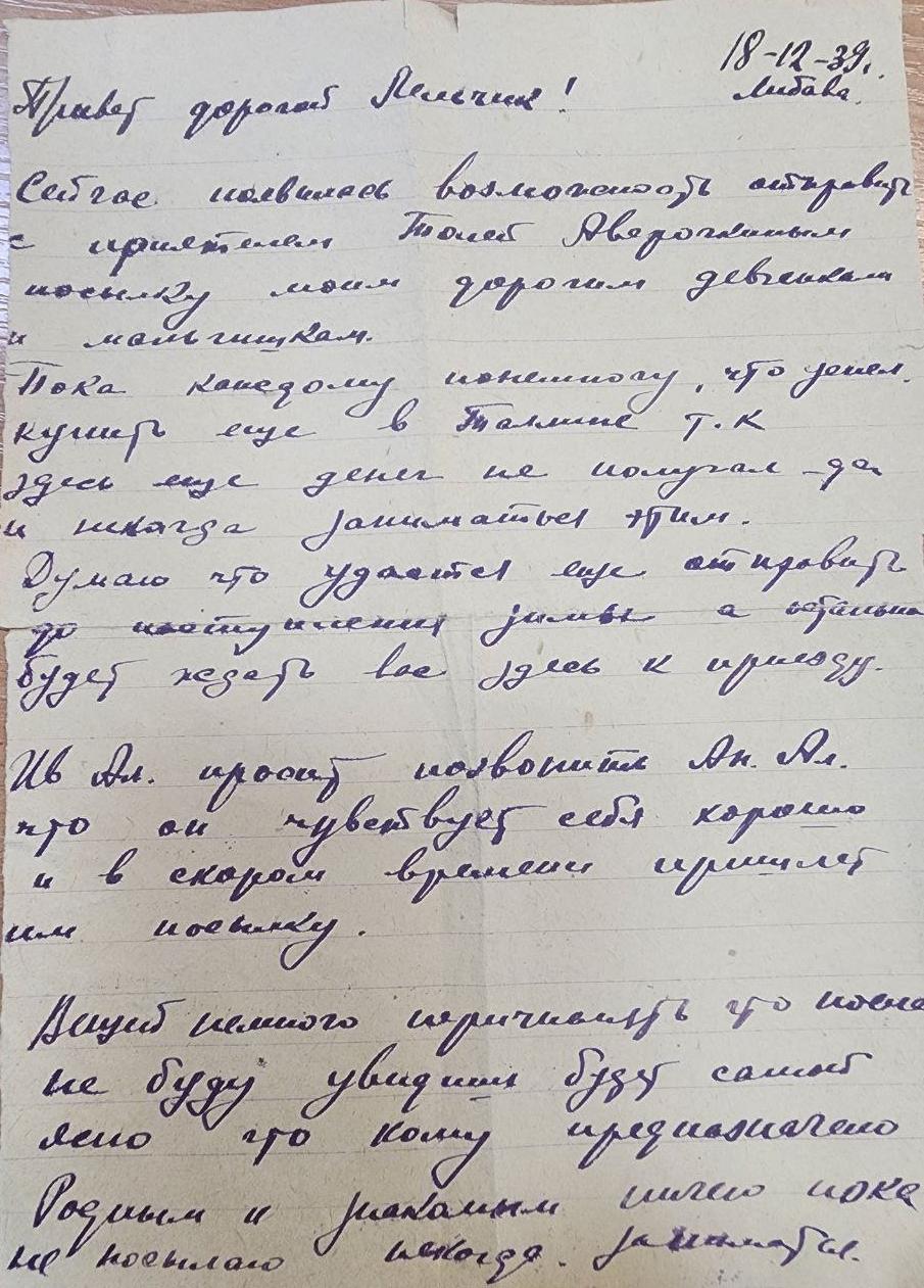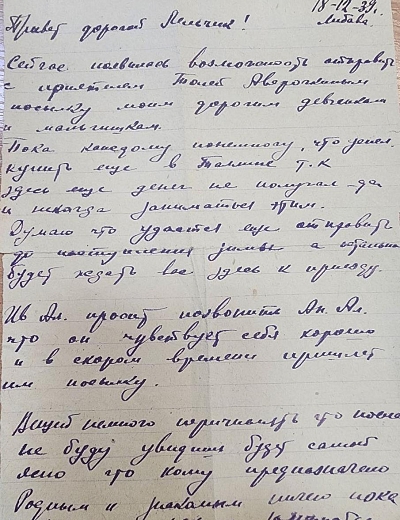 Дата написания письма: 18.12.1939