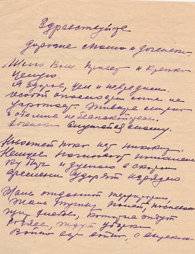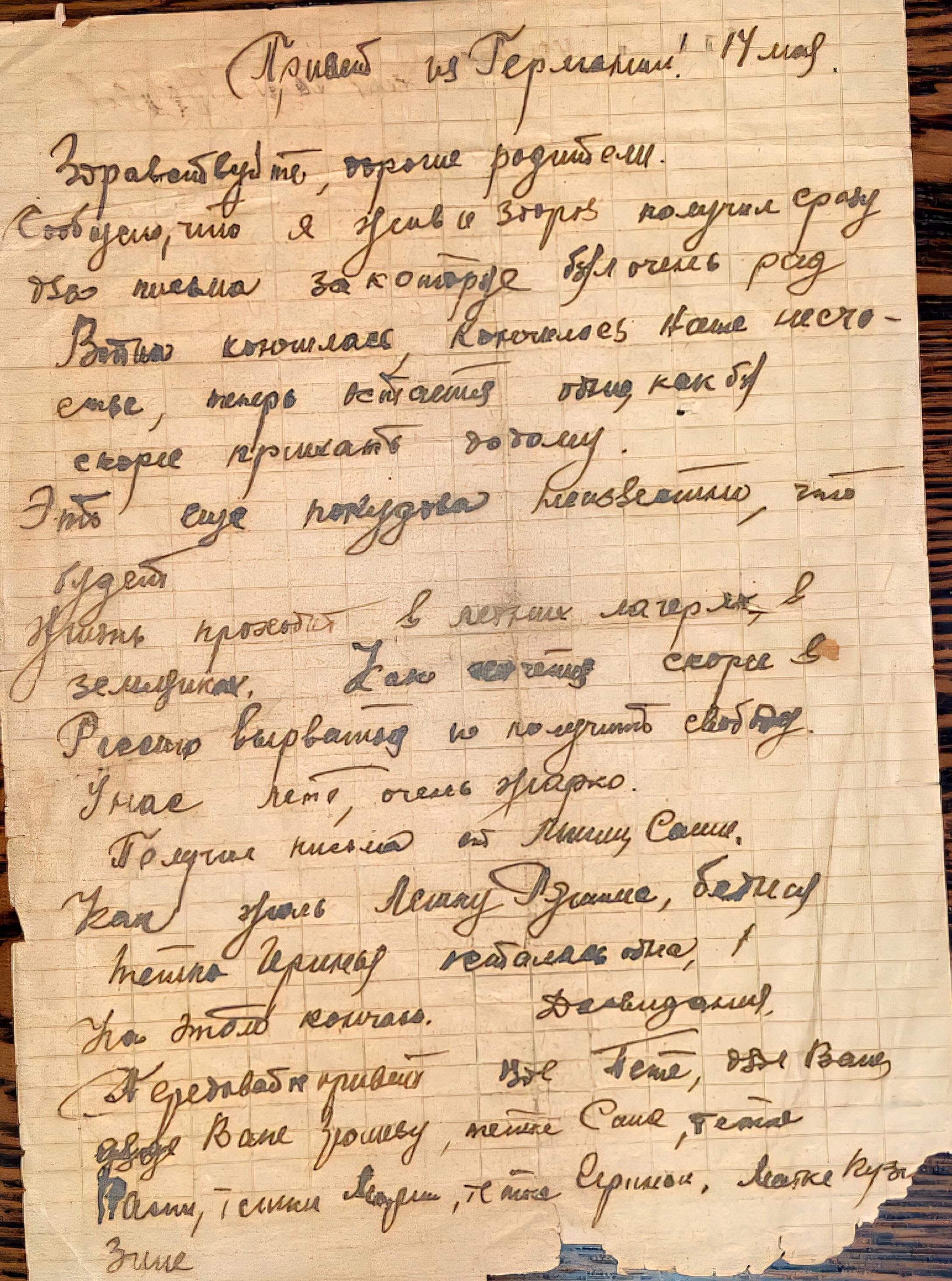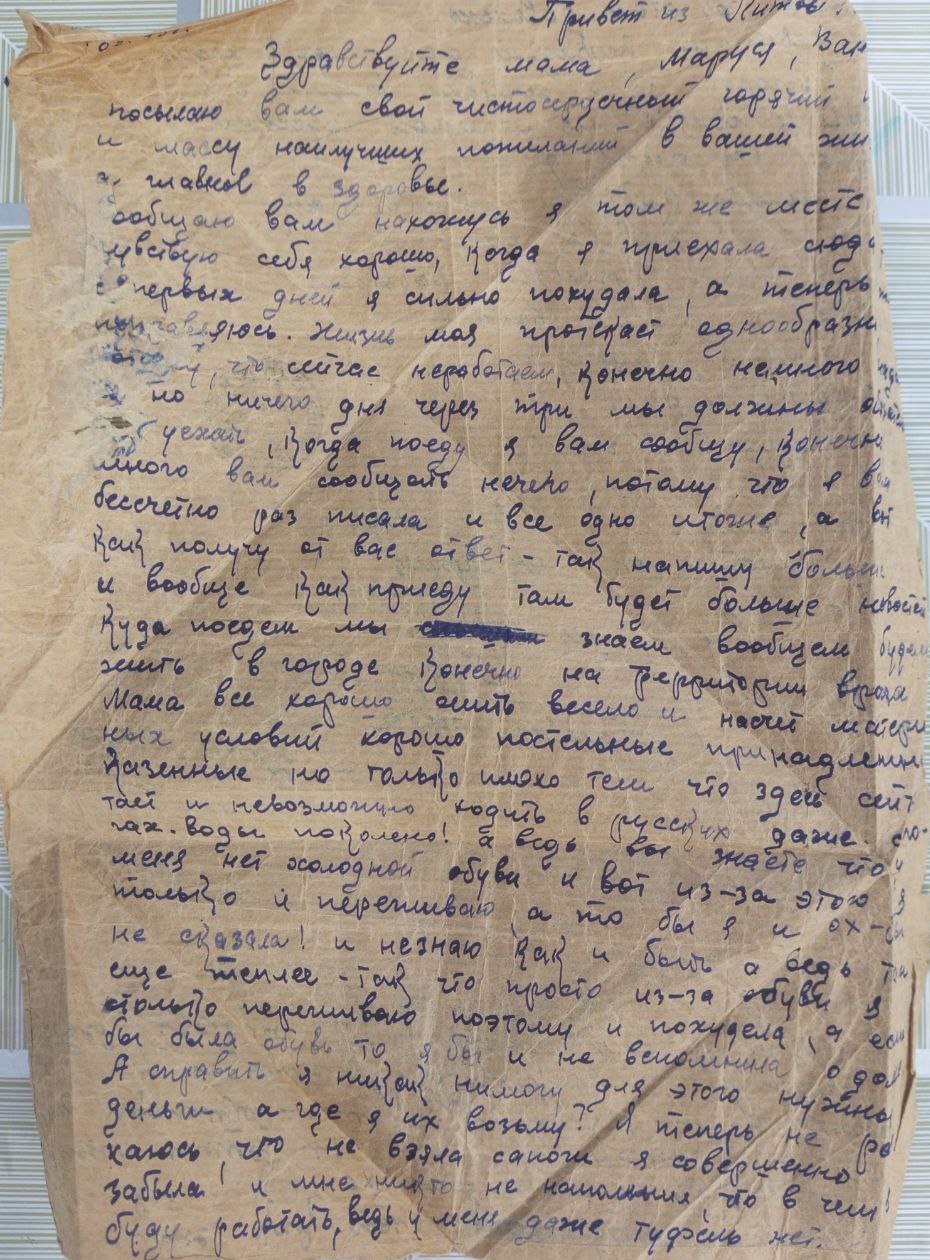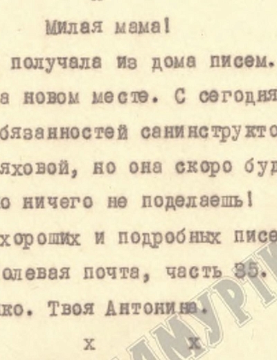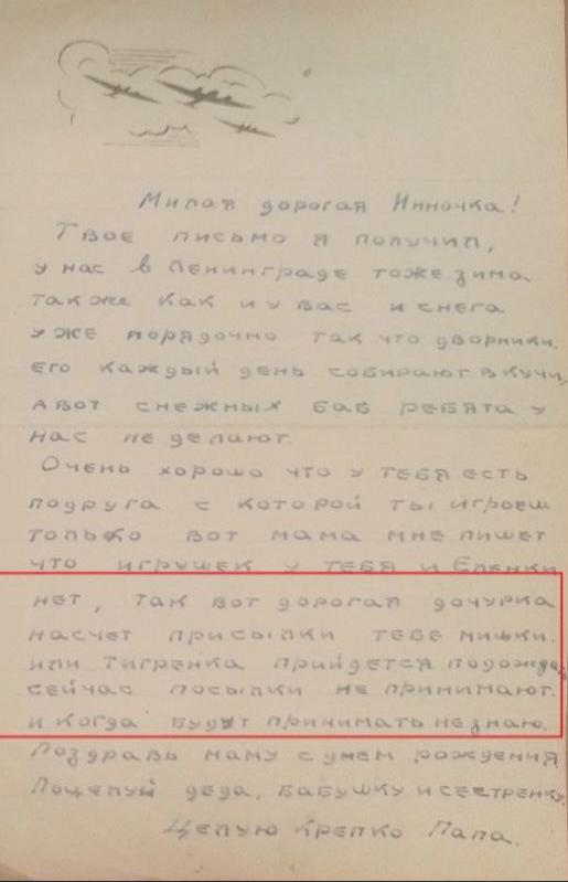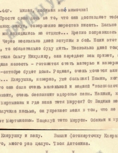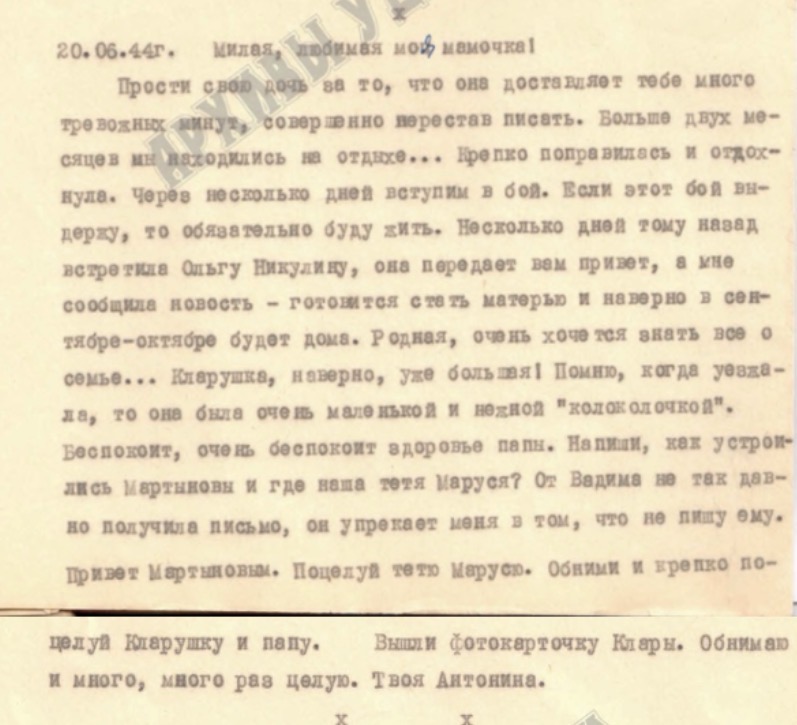 Письма фронтовика Виктора Касаткина адресованы своей дочери Нине. Это письмо было написано в эвакуацию в Молотовскую область из Ленинграда. Виктор служил в Кронштадте и Ленинграде. Был военным инженером.
