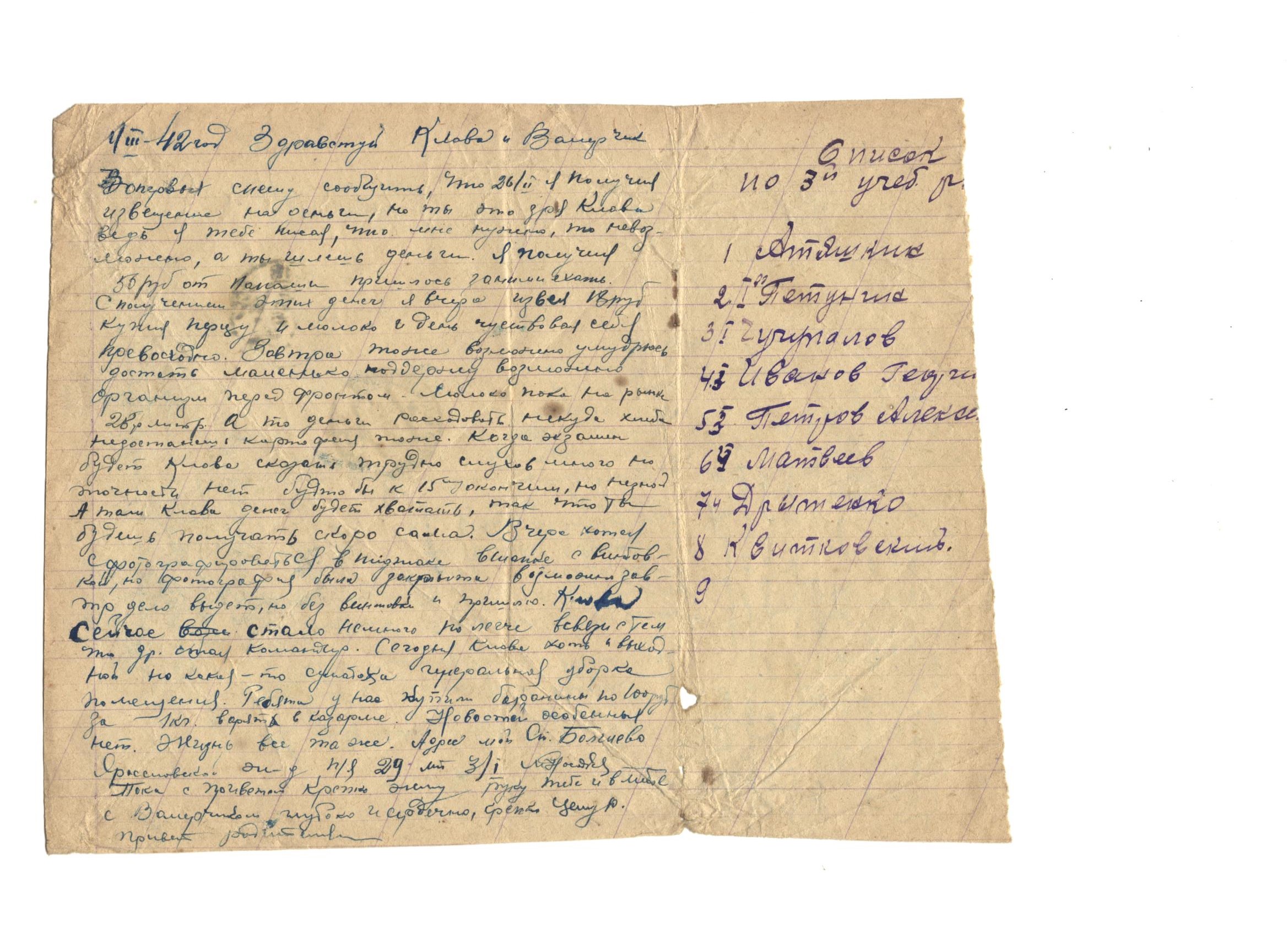 31 августа красноармеец, заместитель политрука роты Касаткин Серафим Дмитриевич отправил домой последнее письмо.