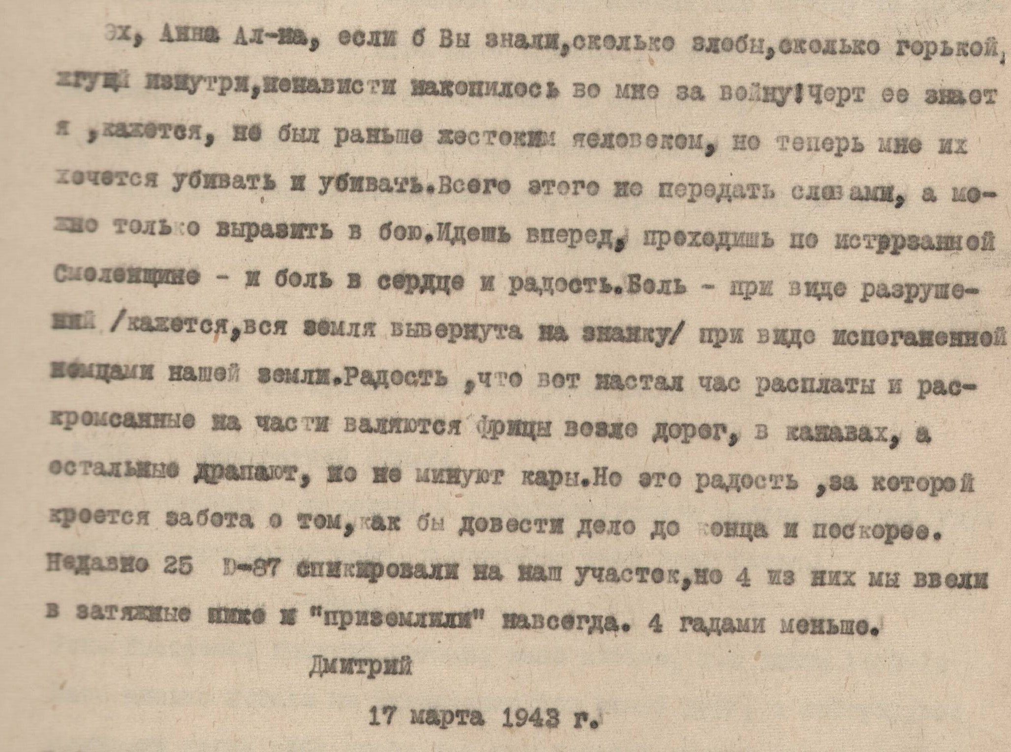 Дата написания письма: 17.03.1943