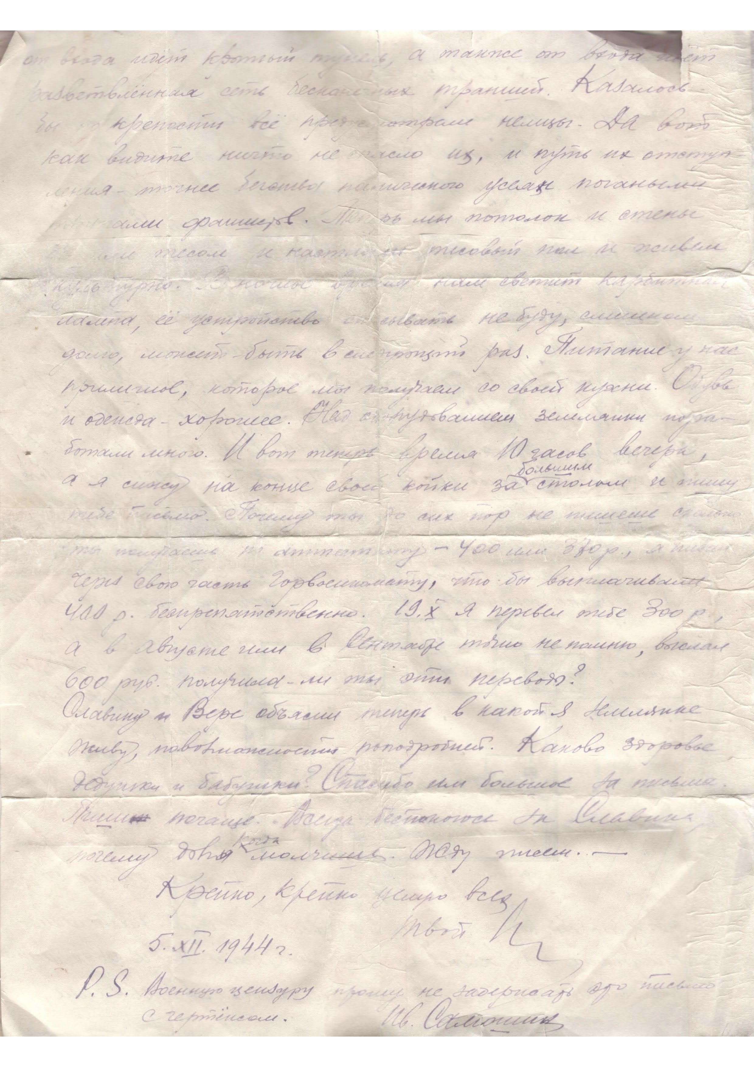 Дата написания письма: 05.12.1944