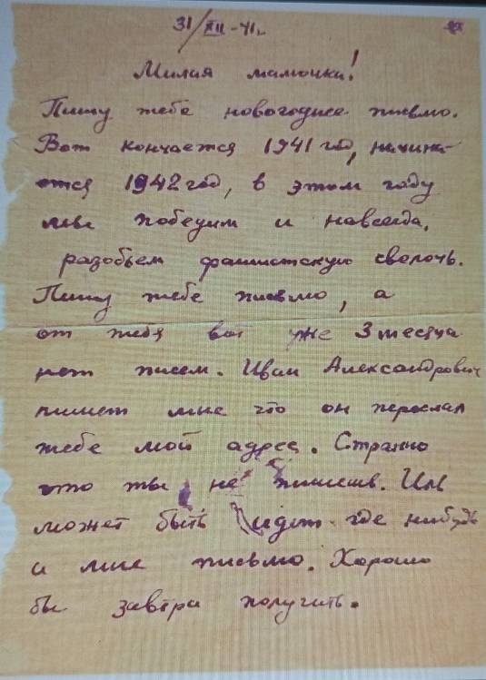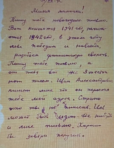 Дата написания письма: 31.12.1941