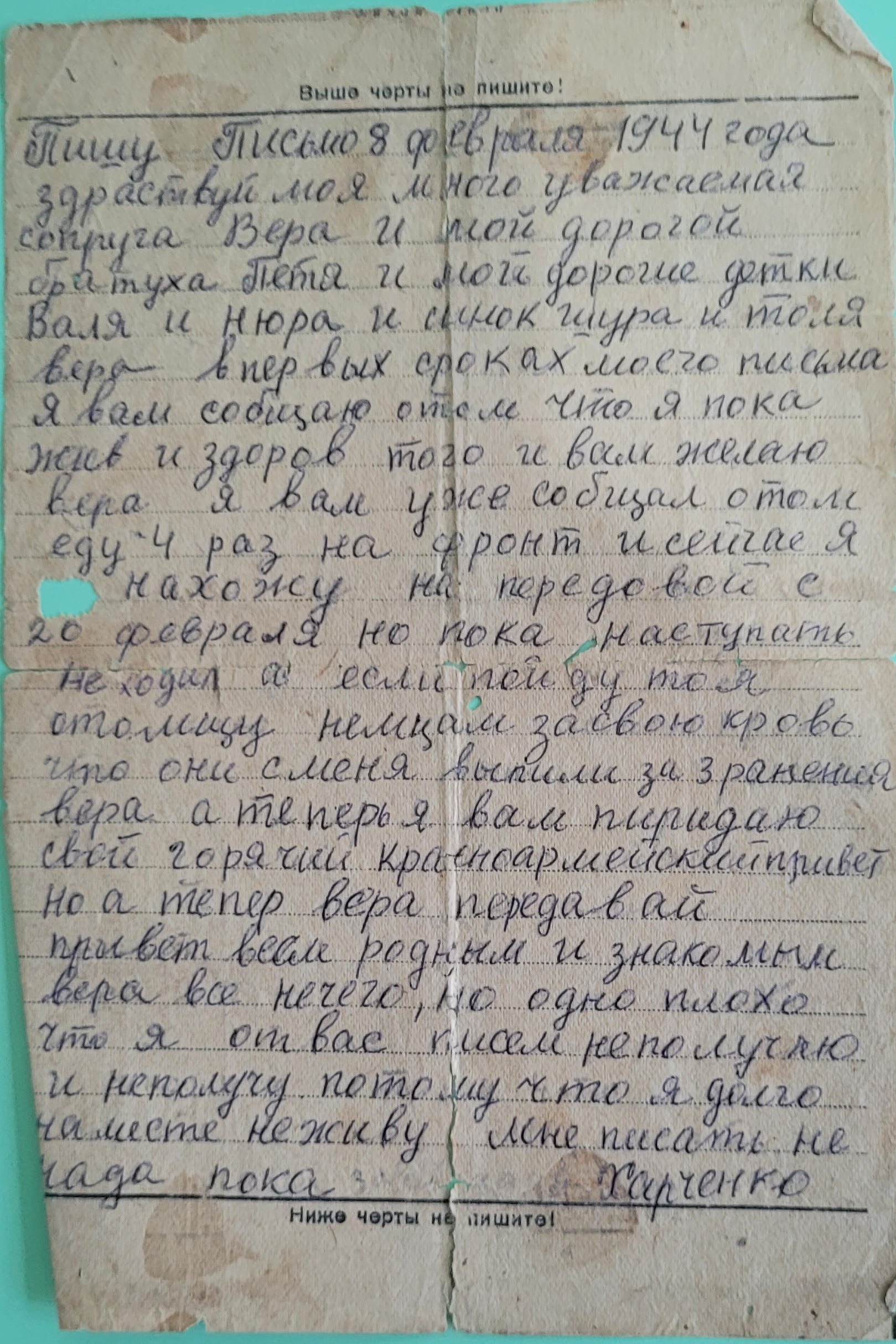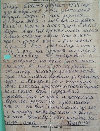 Дата написания письма: 08.02.1944