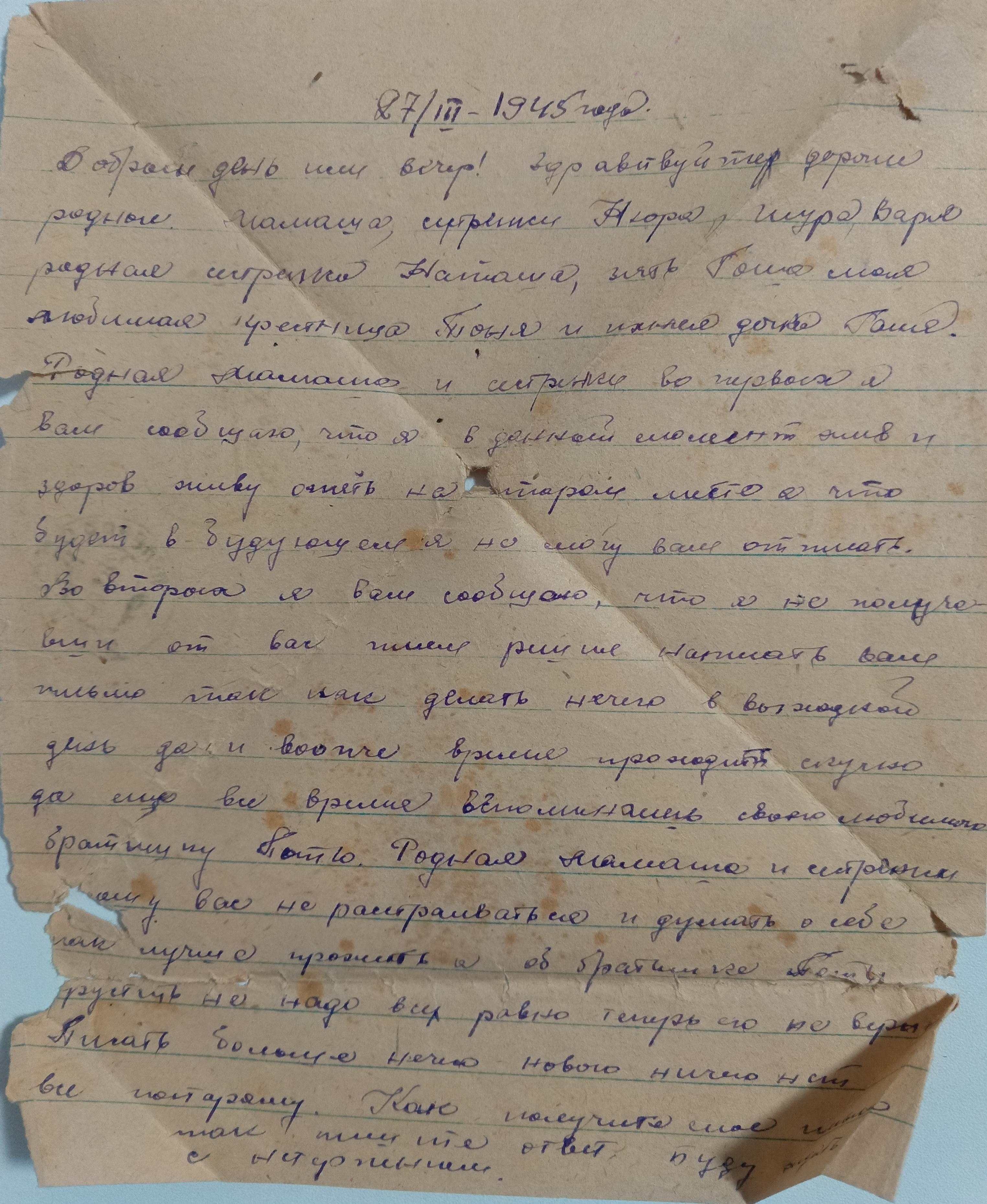 Дата написания письма: 27.07.1944