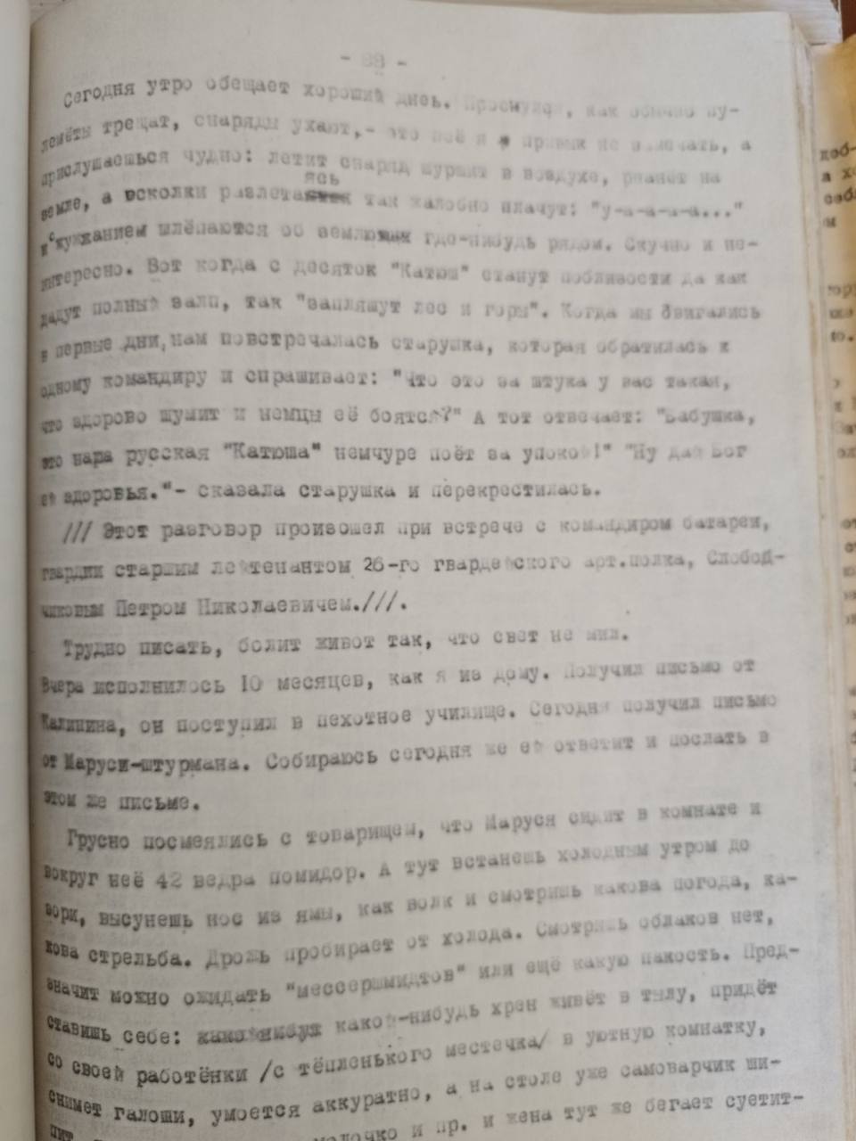 Майор Константин Иванович Гладченко, родился в Днепропетровской области, в 1912г. Служил с 1941г. в 26 гвардейской танковой бригаде, был командиром батальона танковой бригады. В мае 1943 г. он познакомился с Марией Кидановой, во время нахождения в г. Короча перед Прохоровским сражением. Уроженка г. Короча, секретарь Райкома партии в городе, Мария Васильевна Киданова, бережно передала все 34 письма за год, из личной переписки.