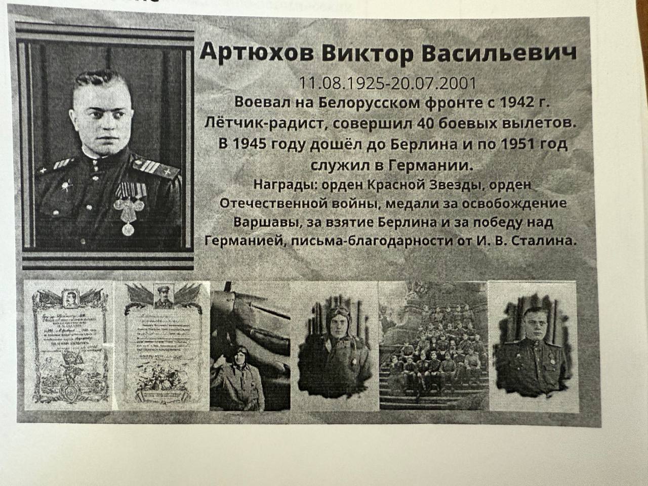 Был младшим сержантом. При выполнении боевого задания он и несколько его товарищей получили ранения, после чего были госпитализированы в госпиталь. Там учащиеся школы №20 подготовили для них выступление и подарки. Красноармейцам было очень приятно, что к ним проявили такую заботу. В знак благодарности они написали им письмо, и после этого до окончания войны держали связь с ними.