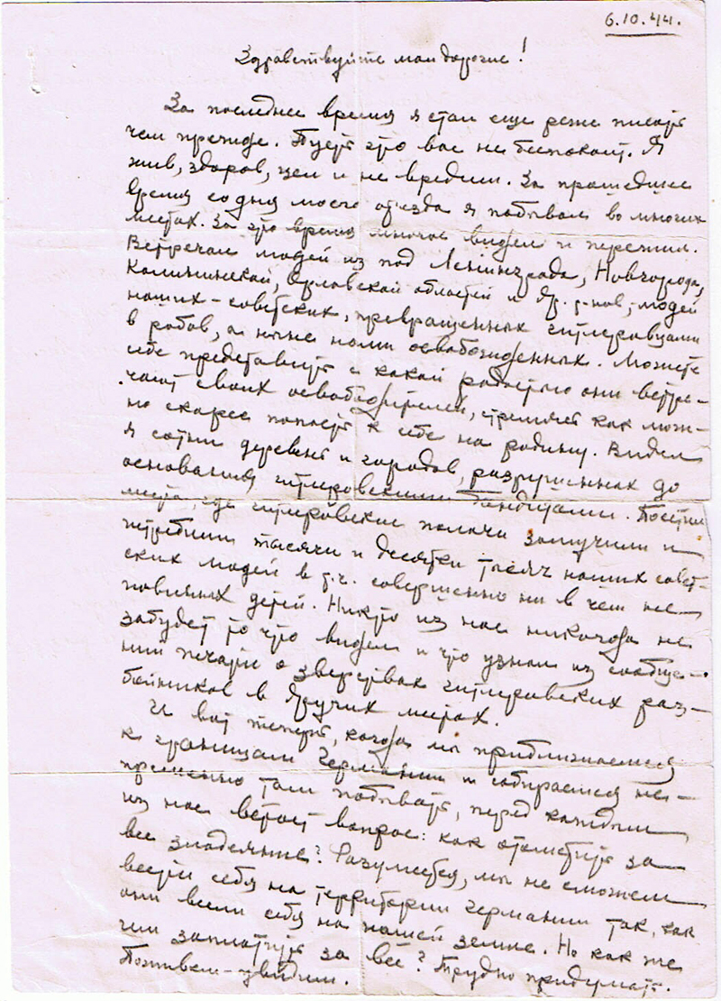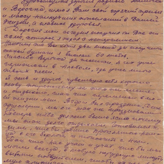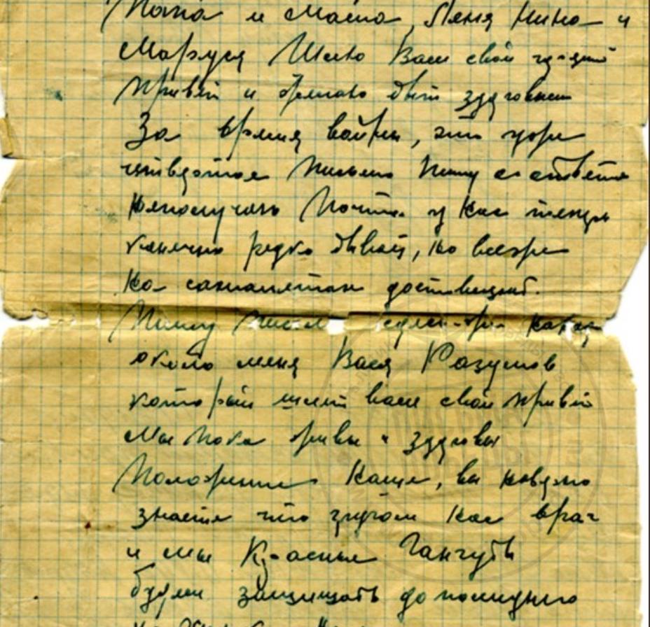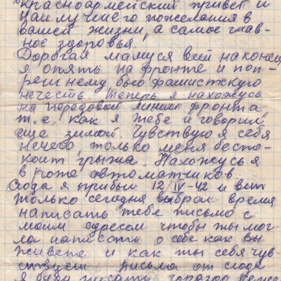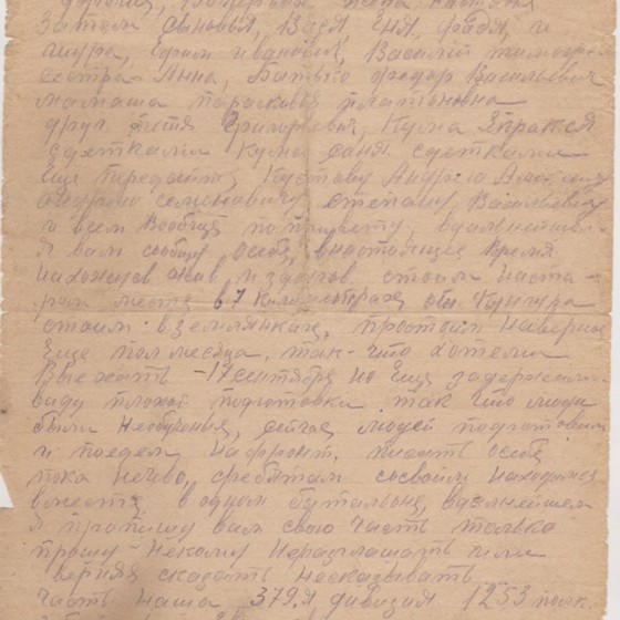 Афанасий Семёнович Бирюков пишет родителям своего лучшего друга Александра Алексеевича Яковлева. Афанасий Семёнович Бирюков и Александр Алексеевич Яковлев были призваны на службу в 1939 году, служили вместе под Москвой на станции Хлебниково. В 1941 году отправились на фронт в Смоленскую область. В ходе атаки в одном из сражений Афанасий Семёнович потерял из виду Александра Алексеевича, после чего не знал ничего о его судьбе.