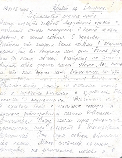 Дата написания письма: 25 января 1945 года