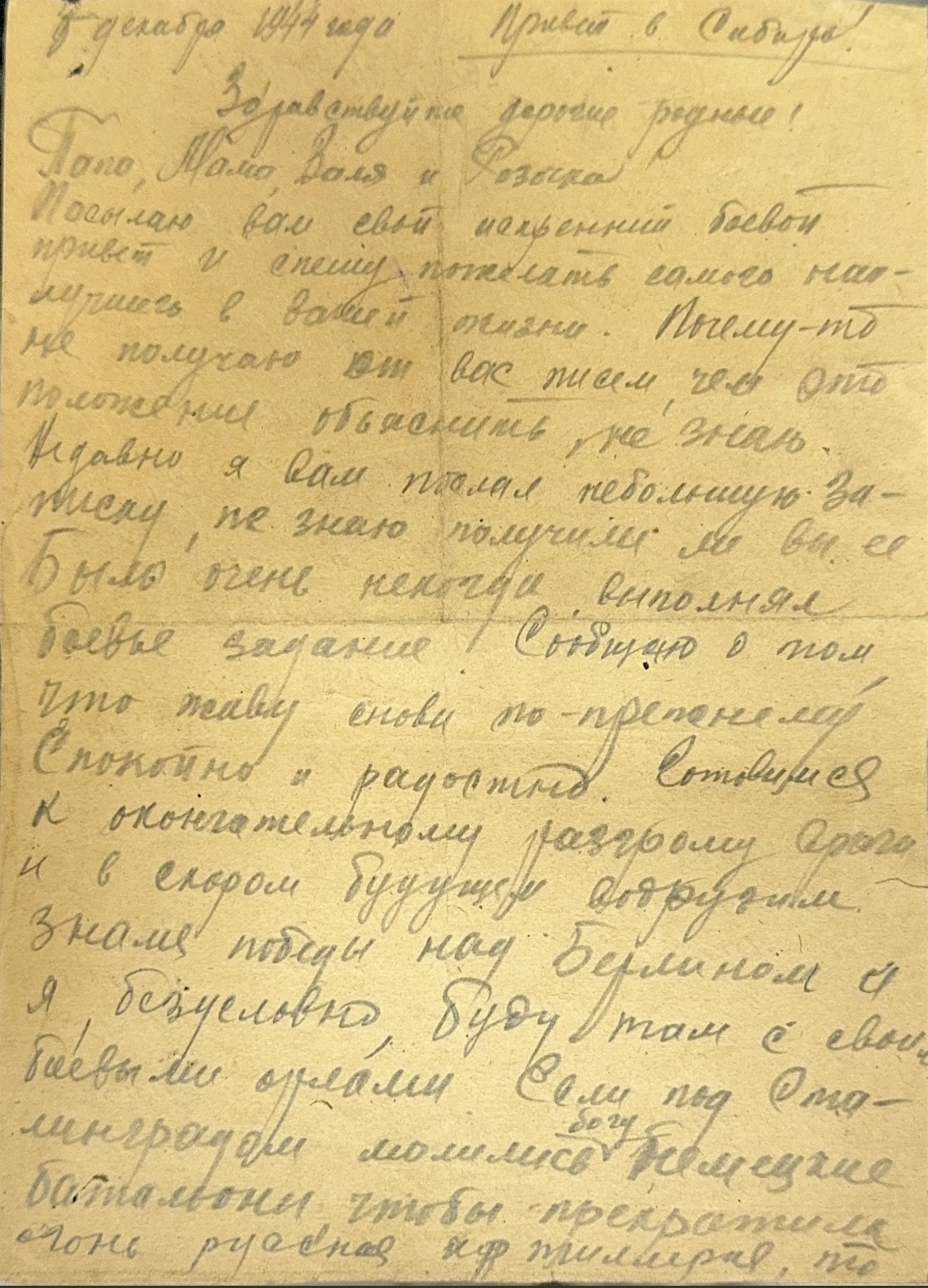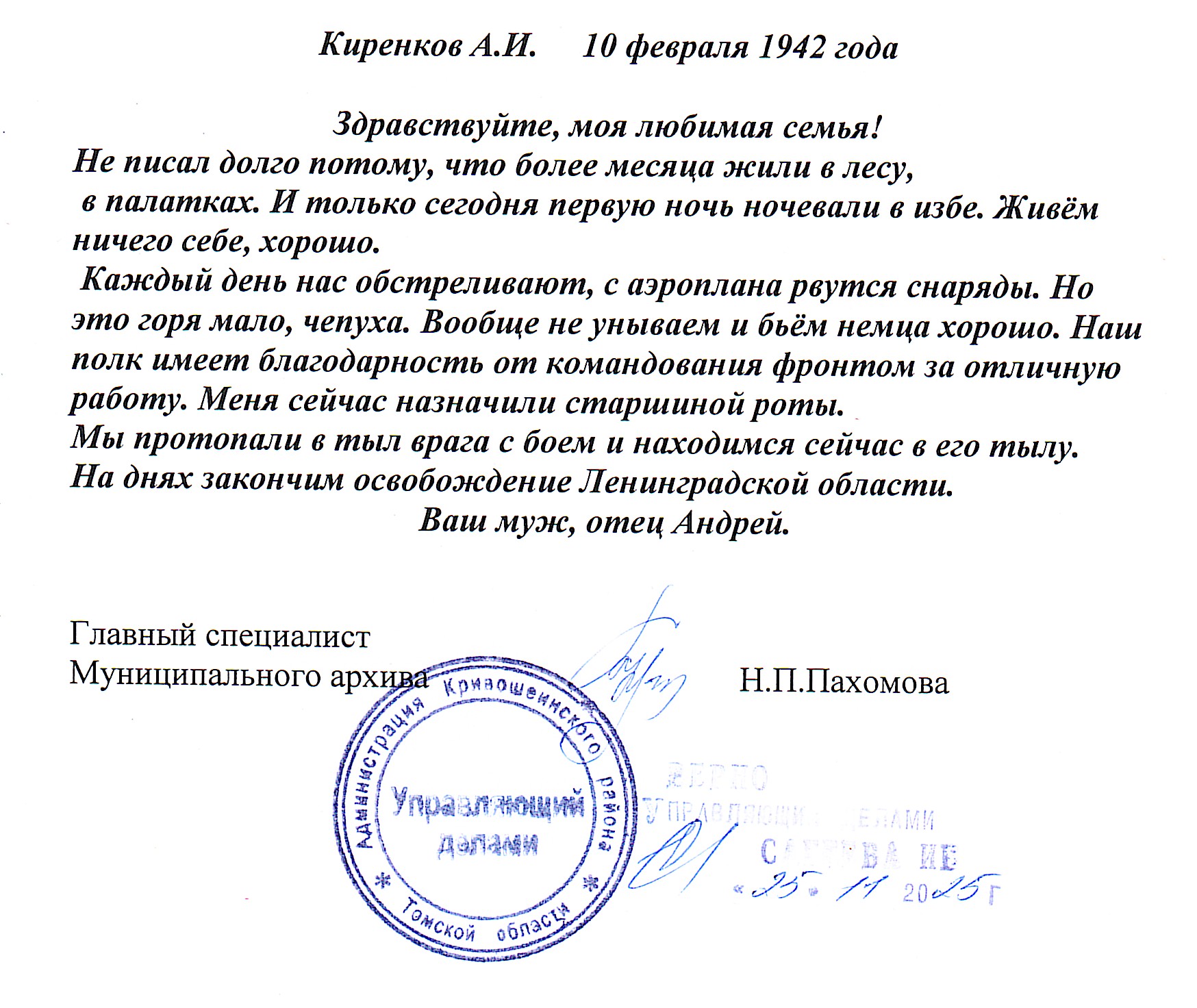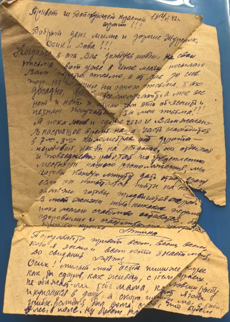 Сохранились письма июль –сентябрь 1941г. Петра Ивановича жене Ольге Константиновой Анисимовой