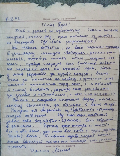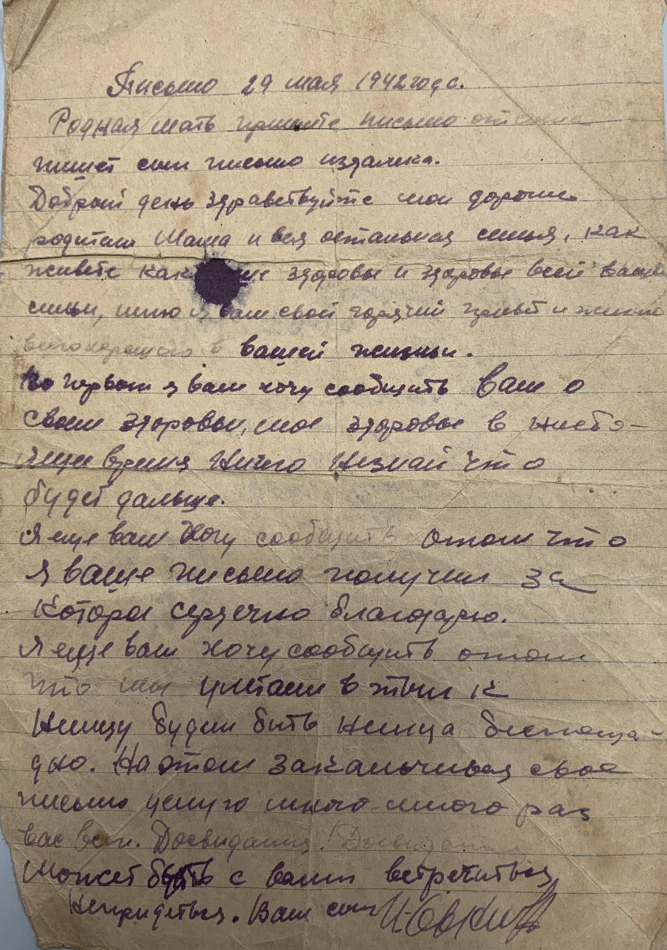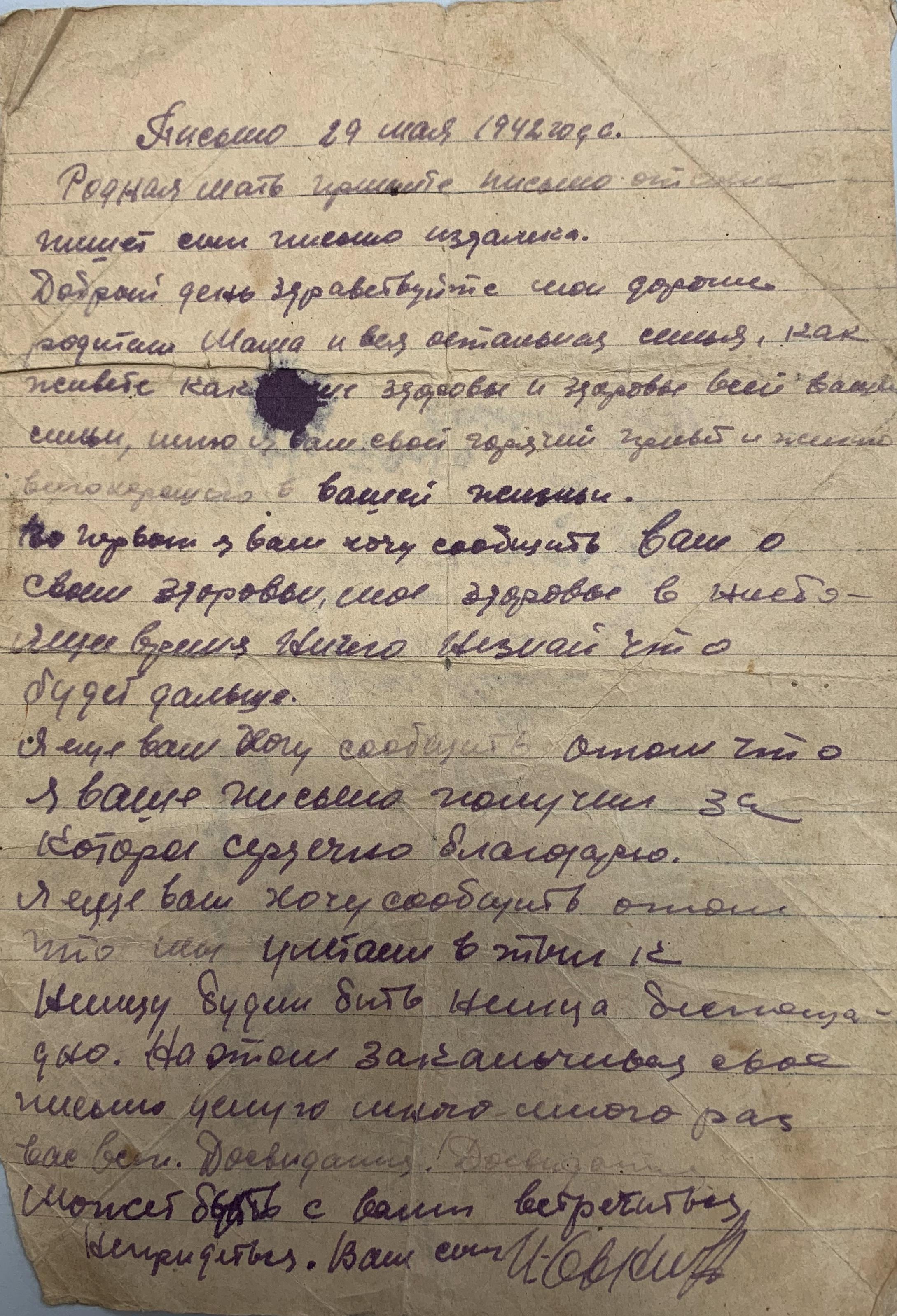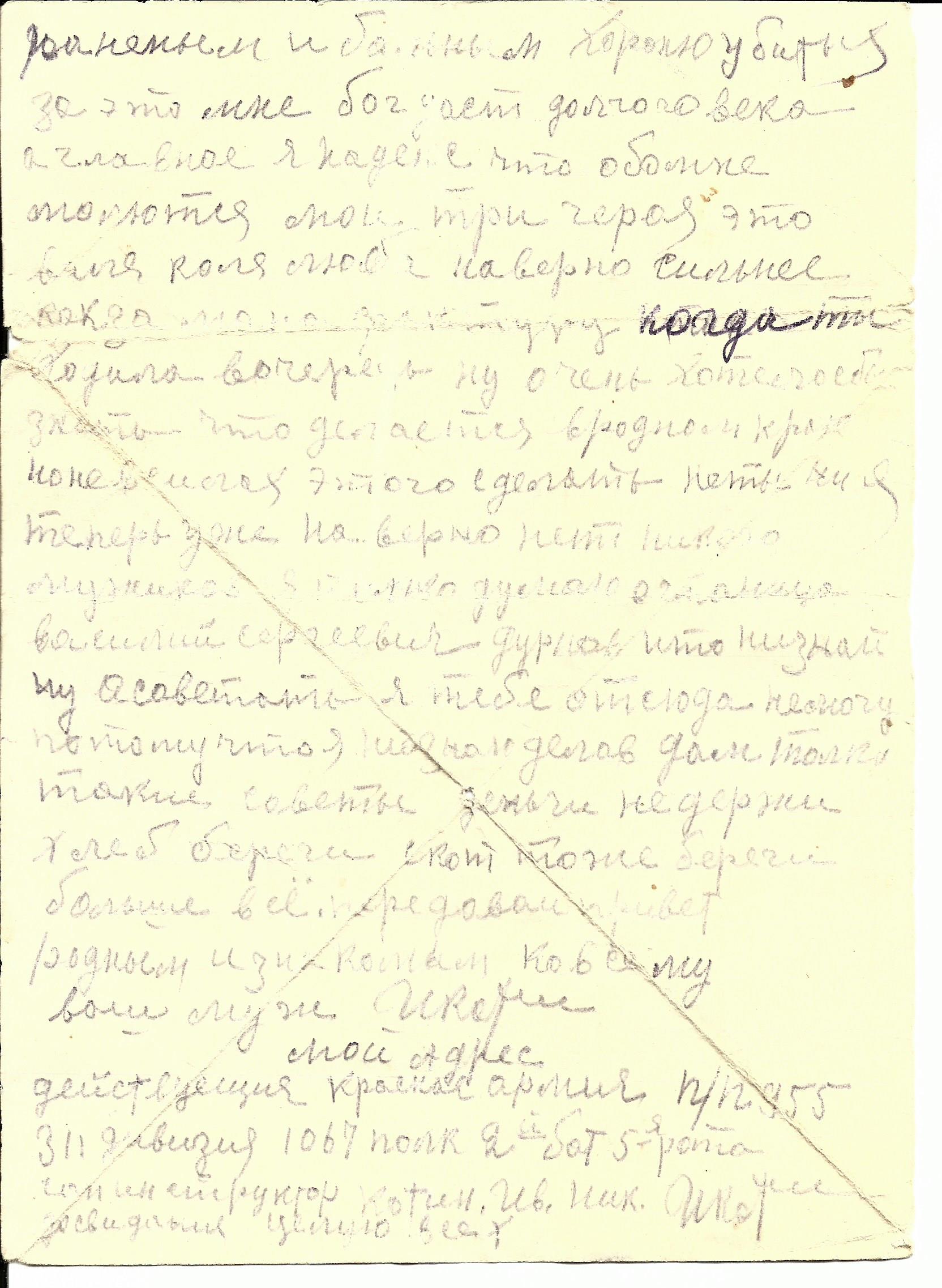 Одинокий человек, писавший сестре своего фронтового друга Кожевой Марии Ильиничне