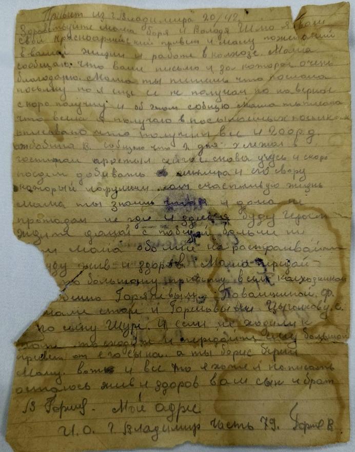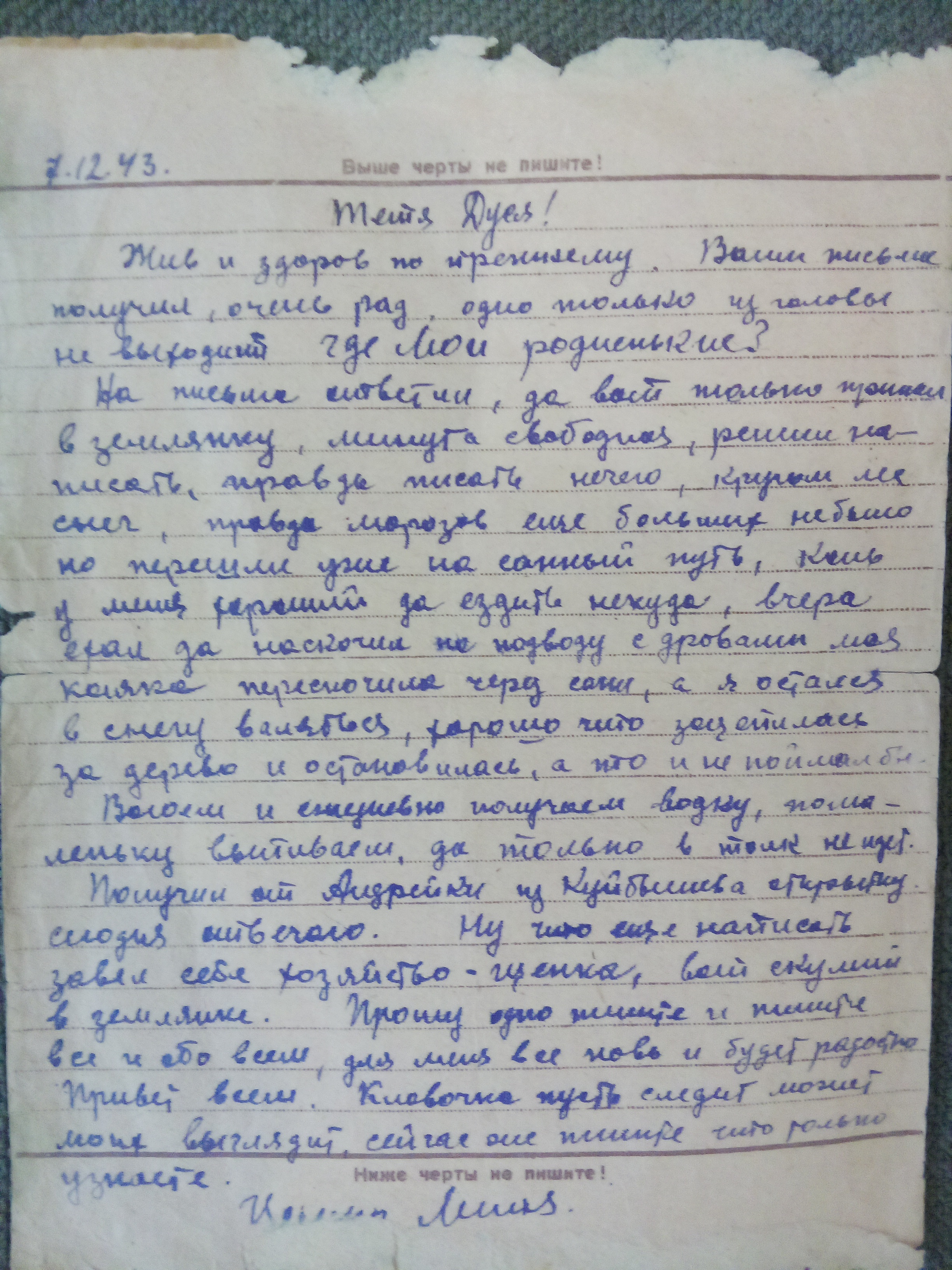 Автор письма: Слесарева (Попова) Мария Васильевна