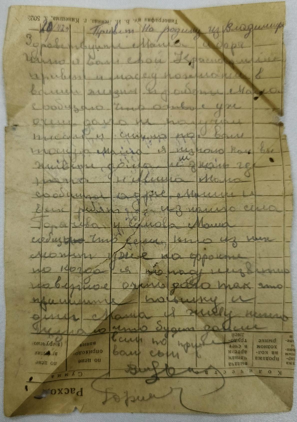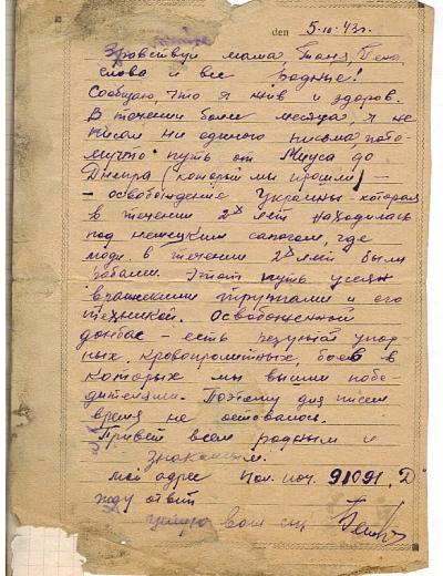 Белов Иван Максимович, простой крестьянский парень, родился 9 апреля 1919 года в селе Красное Никольского района, прошел всю войну. Работал учителем, преподавал физику, математику, некоторое время был директором школы. Последние годы вместе с женой проживал у дочери в селе Нижний Шкафт Никольского района Пензенской области. Умер Иван Максимович Белов 13. Июня 2009 года. Отправляя весточку в родной дом, Иван Максимович Белов не мог и помыслить, что спустя десятилетия его скромное послание станет достоянием многих. Он писал просто и искренне, без прикрас и замысловатых фраз, передавая приветы маме, сестре и племянникам. До нас дошло лишь одно письмо Белова Ивана Максимовича, пропитанное порохом войны и тоской по дому. Его бережно сохранила и предала дочь, Новикова Татьяна Ивановна жительница села Нижний Шкафт Никольского района Пензенской области. В скупых строках этого письма – эхо великой битвы за освобождение Украины от немецко-фашистских захватчиков в годы Великой Отечественной войны.