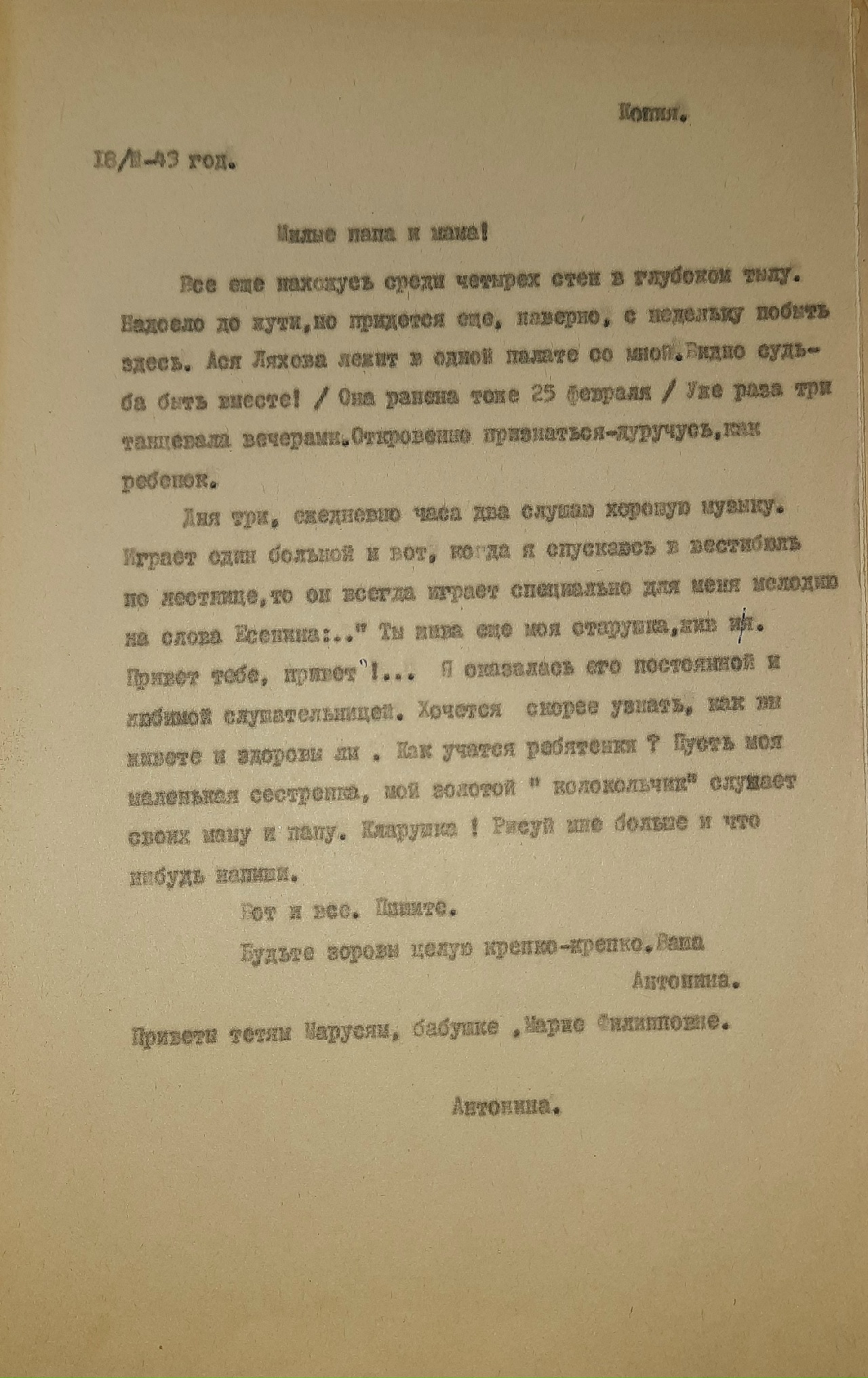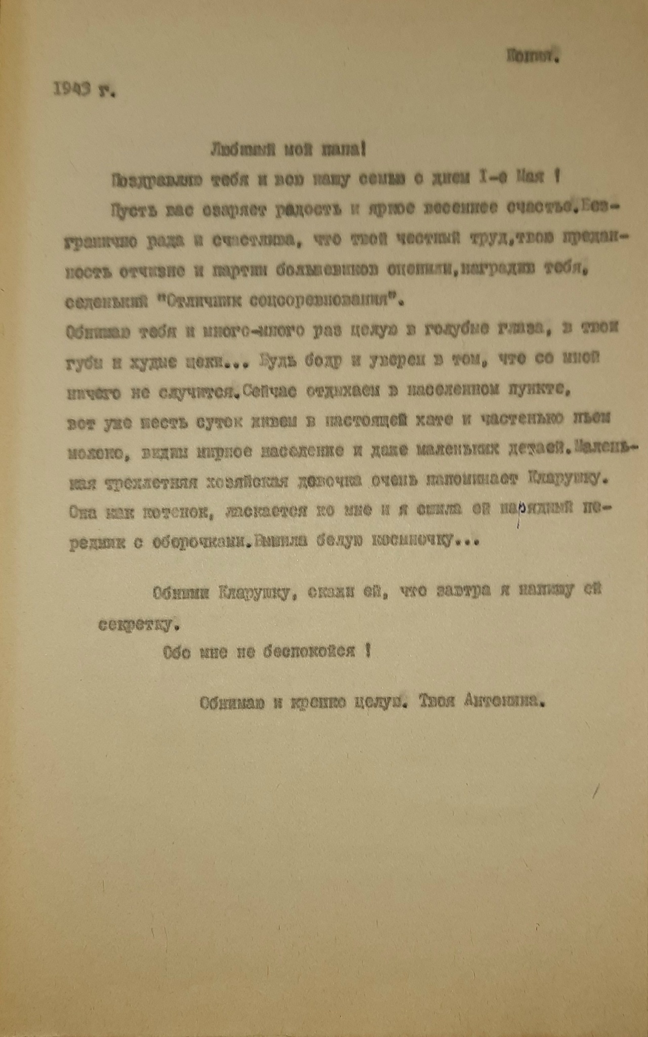 Больше писем семья от мужа и отца не поучала, а из военкомата сообщили, что он «пропал без вести».