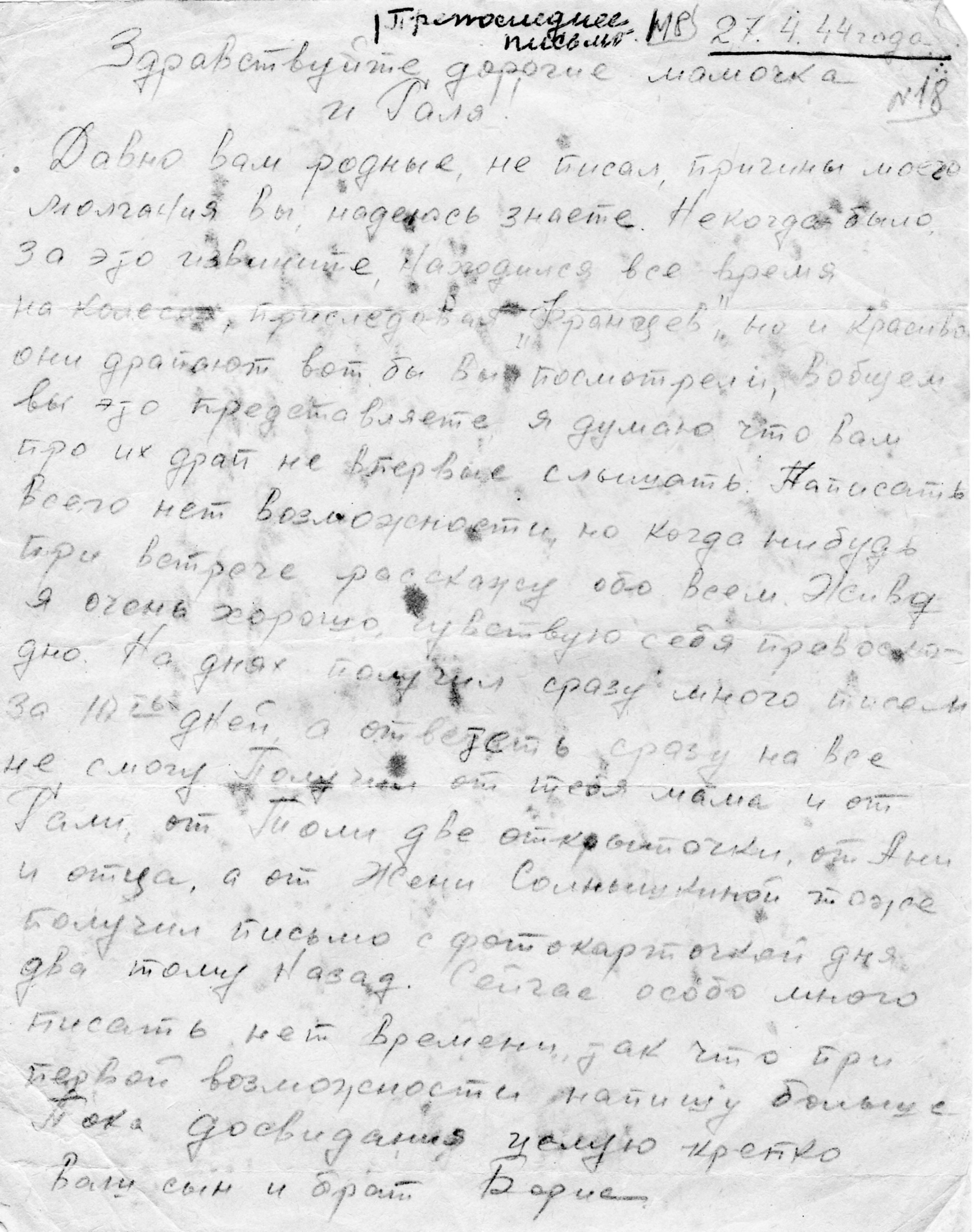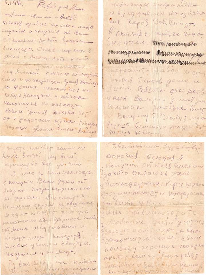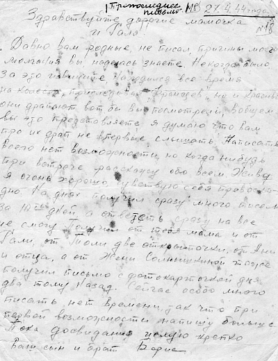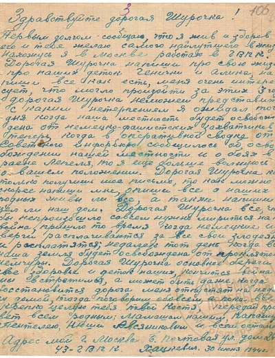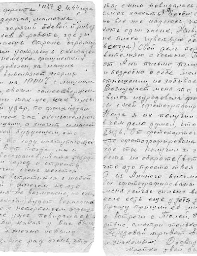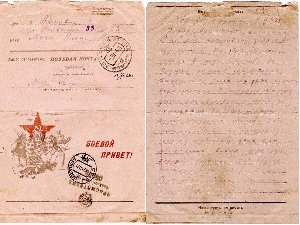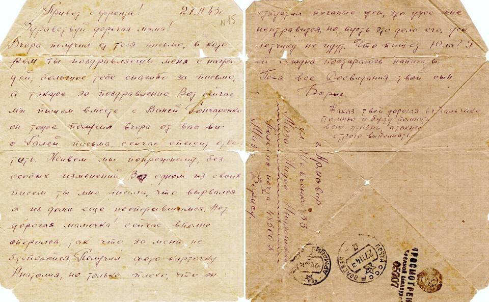 Федору Шумову строчки давались нелегко.Скорее всего, письмо было написано в Выборг (сейчас Россия), предполагает правнук отправителя. Жена солдата оказалась в этом городе во время войны, работала там няней в детском саду.Дальше про Федора известно совсем немного. В 1943 году он получил медаль «За оборону Ленинграда», а с 1944-го считается без вести пропавшим. Его жена вернулась в Логойск после войны.