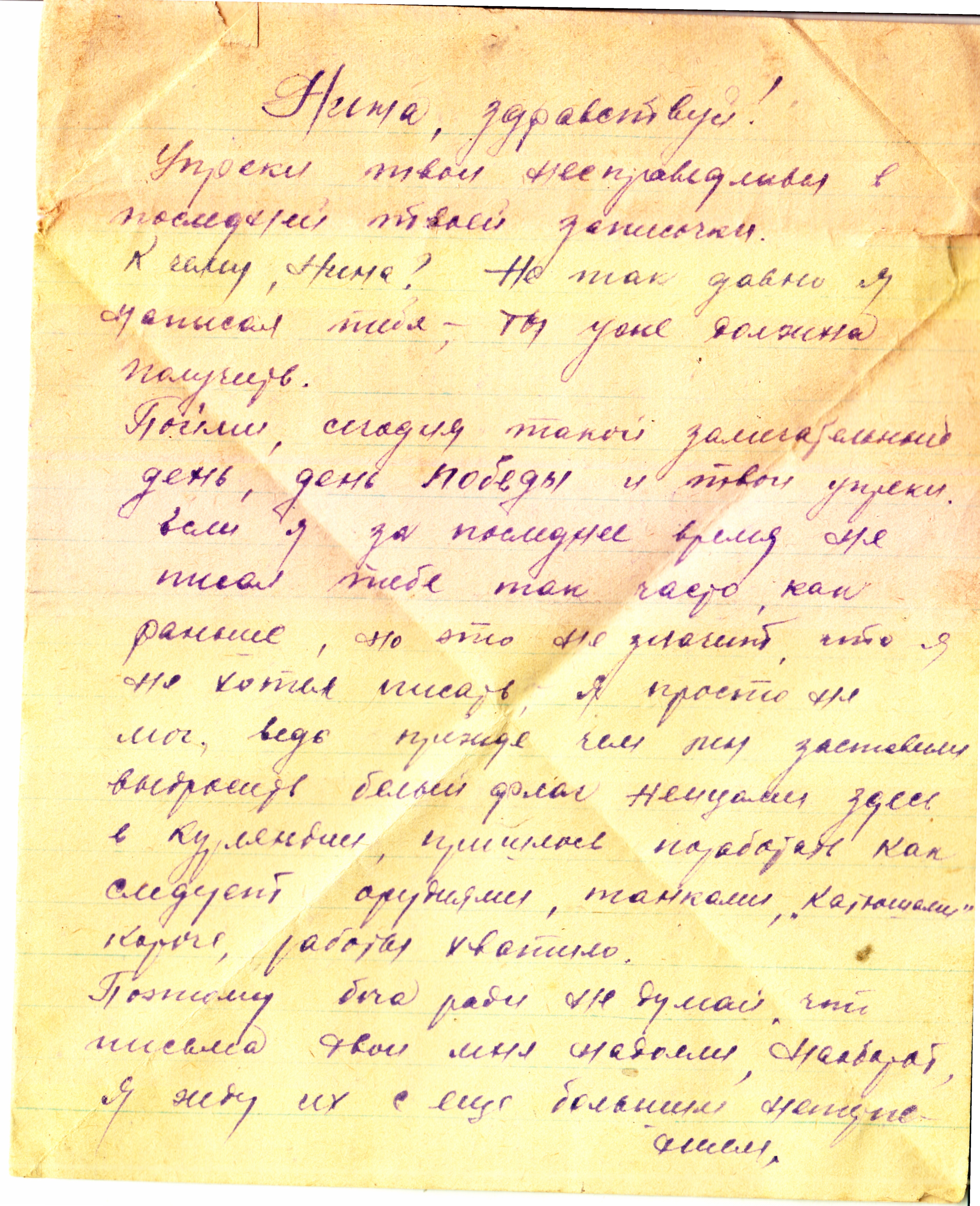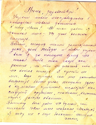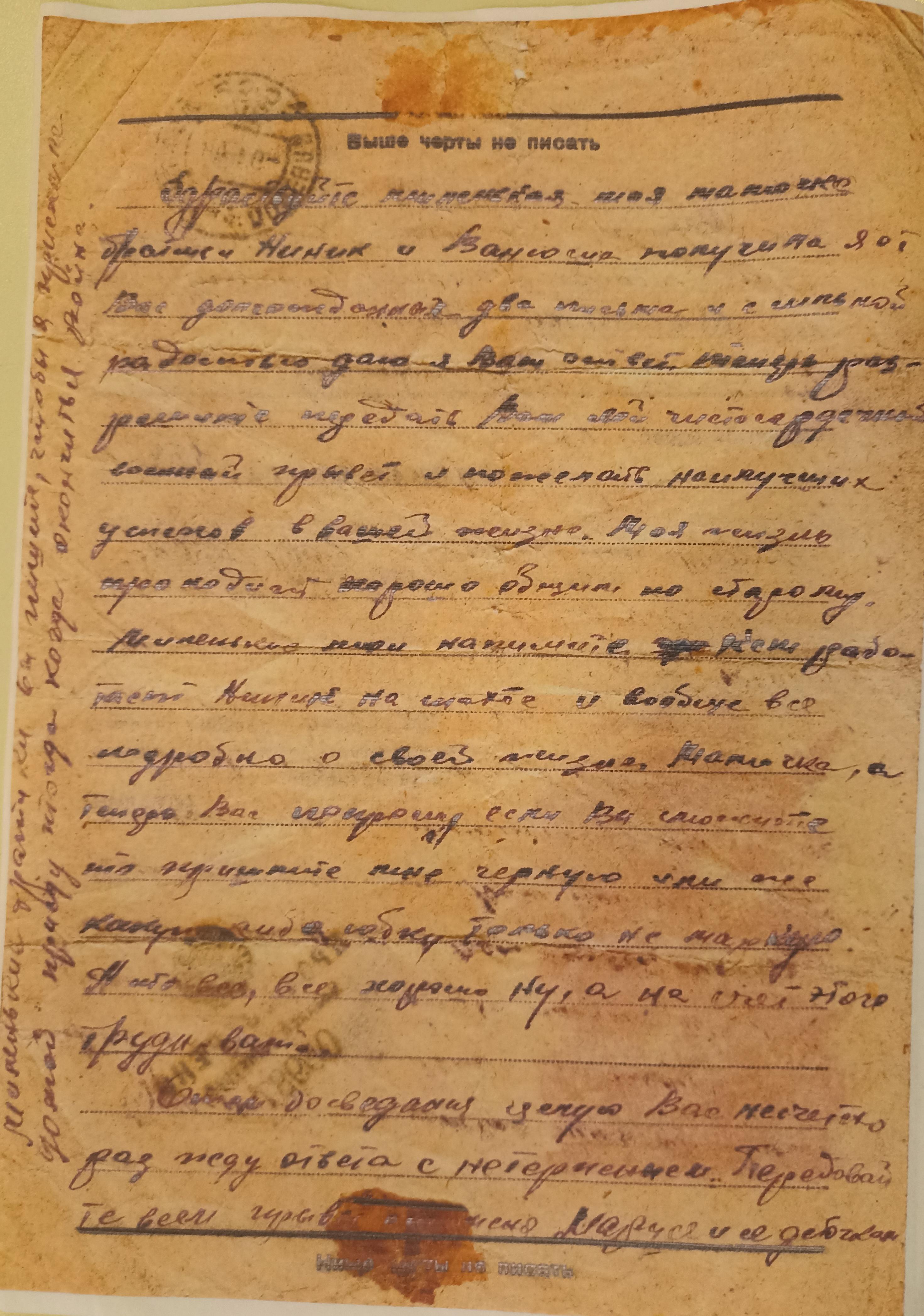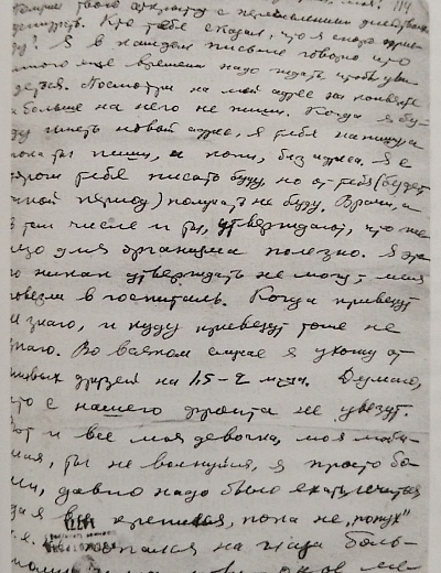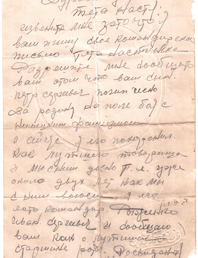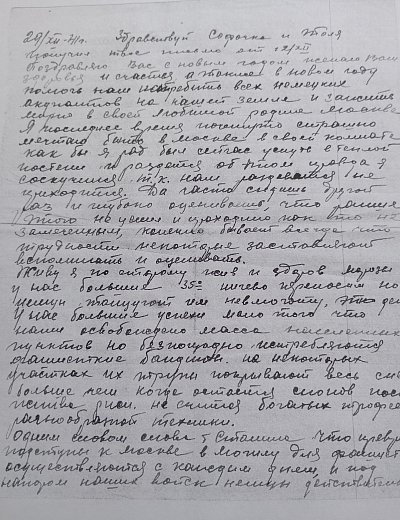 «Я жив, а что будет дальше, конечно, сказать нельзя. На днях вышел приказ о присвоении мне звания заместителя политрука и политотдел нашего полка назначил меня на должность комиссара роты. Это высокое и почетное звание. Я буду стараться выполнять с честью».