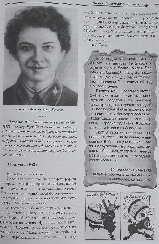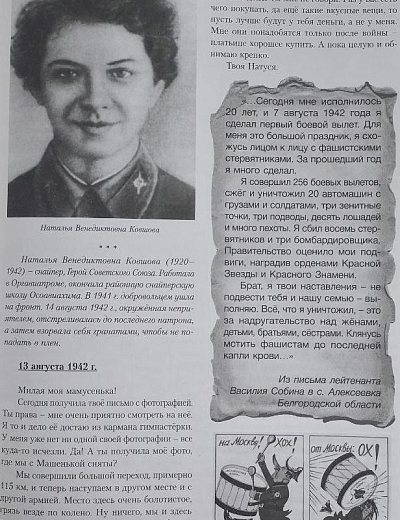 Меньшенина Антонина Филипповна (1922-1944). Ученица школы №3, г. ВоткинскаРодилась 6 июля 1922 года в семье военного комиссара на станции Тайга Томской железной дороги. До 1934 года жила на Урале. В 1934 году семья переезжает в город Воткинск, где Тоня заканчивает в 1937 году неполную среднюю школу, а в 1940 году - среднюю школу № 1 имени Пушкина. В августе этого же года держит экзамен в Московское высшее театральное училище имени Щепкина, но не проходит по конкурсу. Осенью 1941 года поступает в Свердловское театральное училище, закачивает 1-й курс. 28 октября 1942 года подаёт заявление в Троицкий РВК о зачислении её добровольцем в ряды Красной Армии. В ноябре 1942 года прибыла на фронт и была зачислена в санитарную роту. В январе 1943 года становится санитарным инструктором, позднее окончила краткосрочные курсы снайперов.