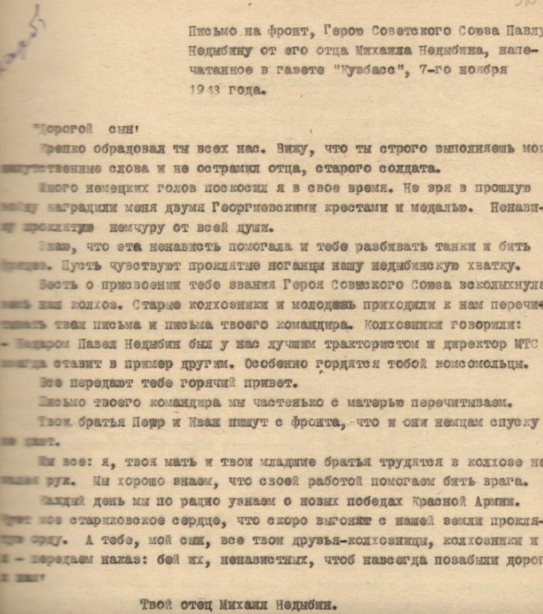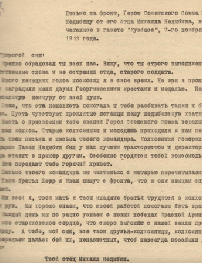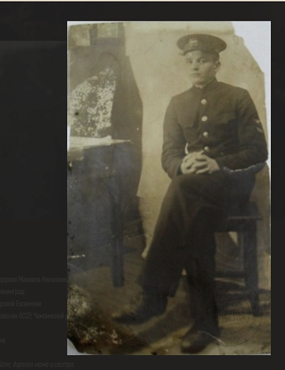 Он прошел всю войну: был артиллеристом, командиром орудия, затем - разведчиком. Погиб 12.03.1945. Первичное место захоронения Восточная Пруссия, Кенигсбергский окр., Прейсиш-Эйлау р-н, д. Эккер, восточнее, 100 м ( Теперь это пос.Коренево, Калининградская обл.) Имеет награды: орден Отечественной войны II степени, медаль «За боевые заслуги», орден «Красной Звезды».