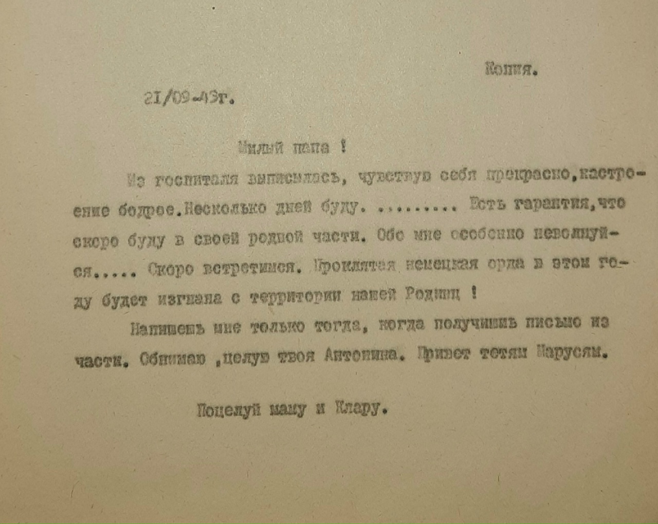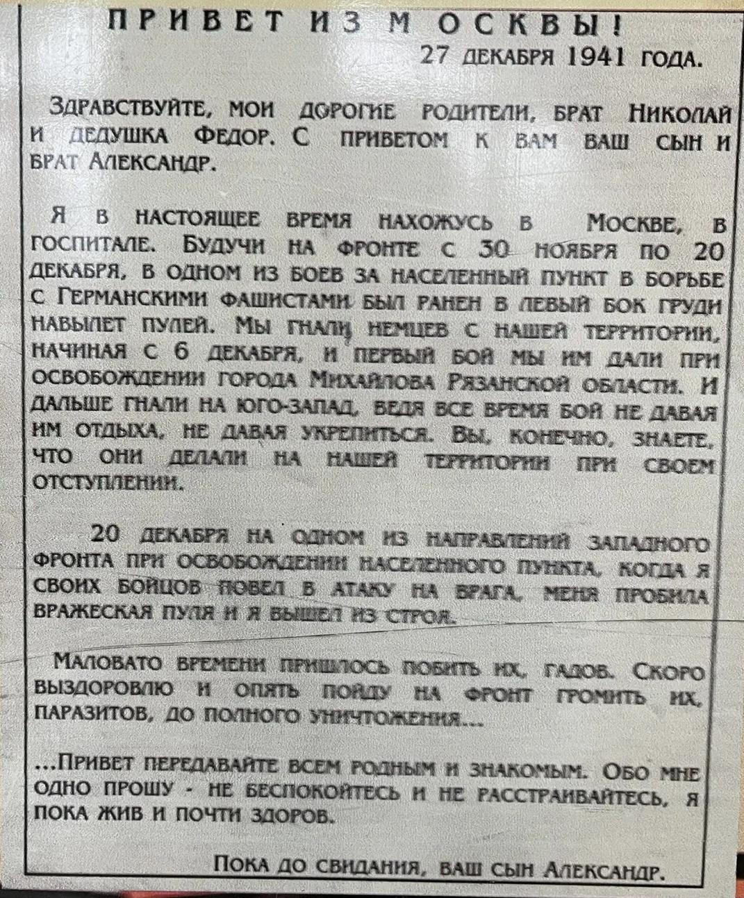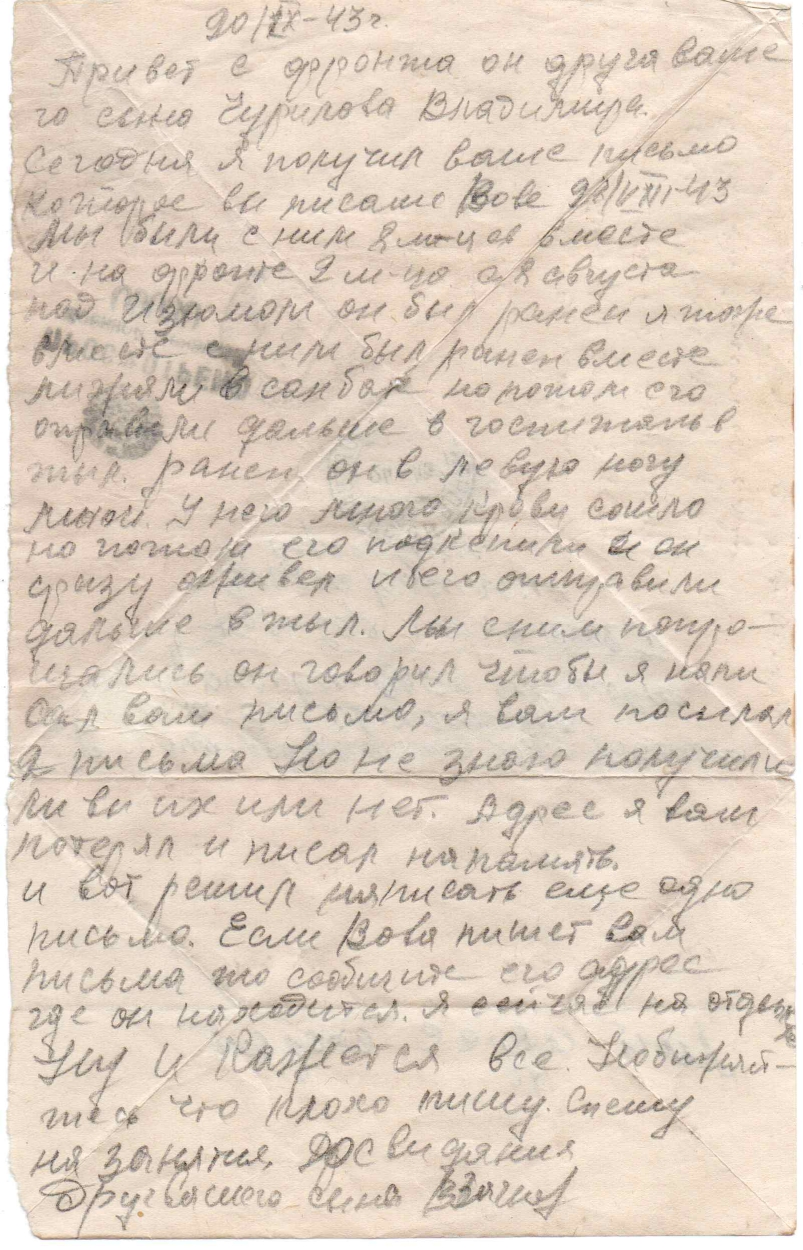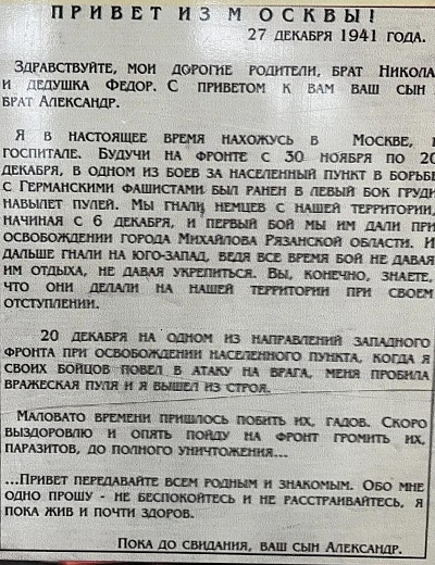 Последнее письмо Сашеньки Горюхиной оправлено домой в январе 1945-го. Александра Ивановна Горюхина пропала без вести перед самой Победой, в апреле 1945 года. Розыски ни чем не помогли.