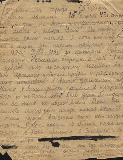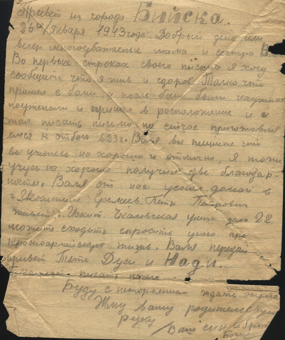 3 сентября 1941 года Иван Орлов ушел на свою третью войну, после Первой мировой и Гражданской. И уже через 2 дня написал первое письмо. Писал он часто. На клочках бумаги, на обороте листовок, на пустых страницах армейских брошюр