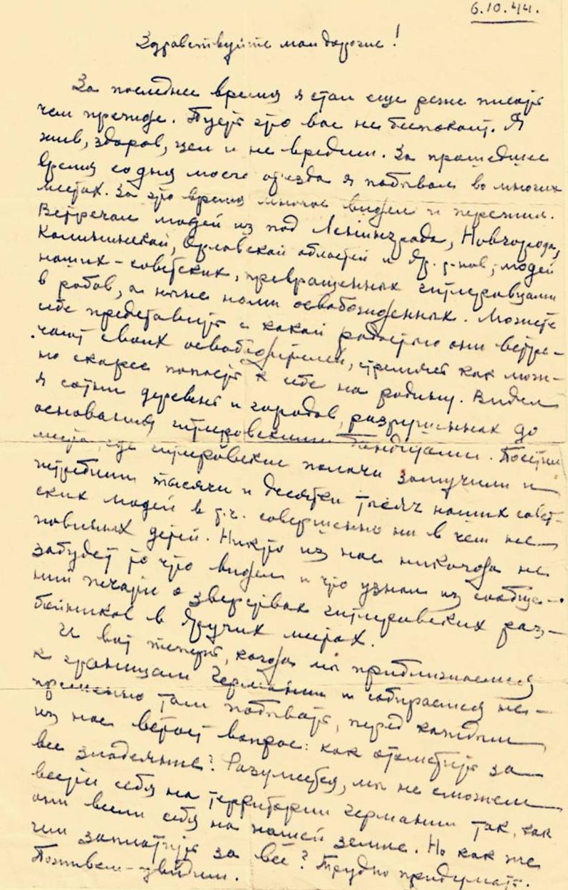 Дата написания письма: 06.10.1944